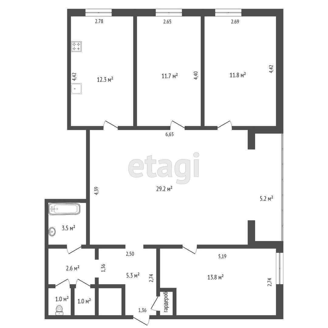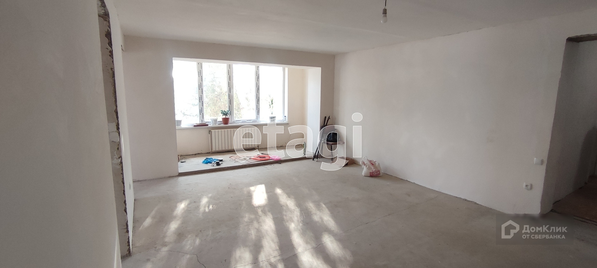 Площадь квартиры 96 кв.м. В квартире предчистовая отделка, стены отштукатурены, пол залит. Комнаты светлые, очень просторные, огромный зал 30 кв.м., раздельный санузел. Все окна в квартире новые металлопластиковые, радиаторы отопления - биметаллические, трубы пластиковые новые. Из окон открывается красивый вид на озеро и новую пешую набережную.