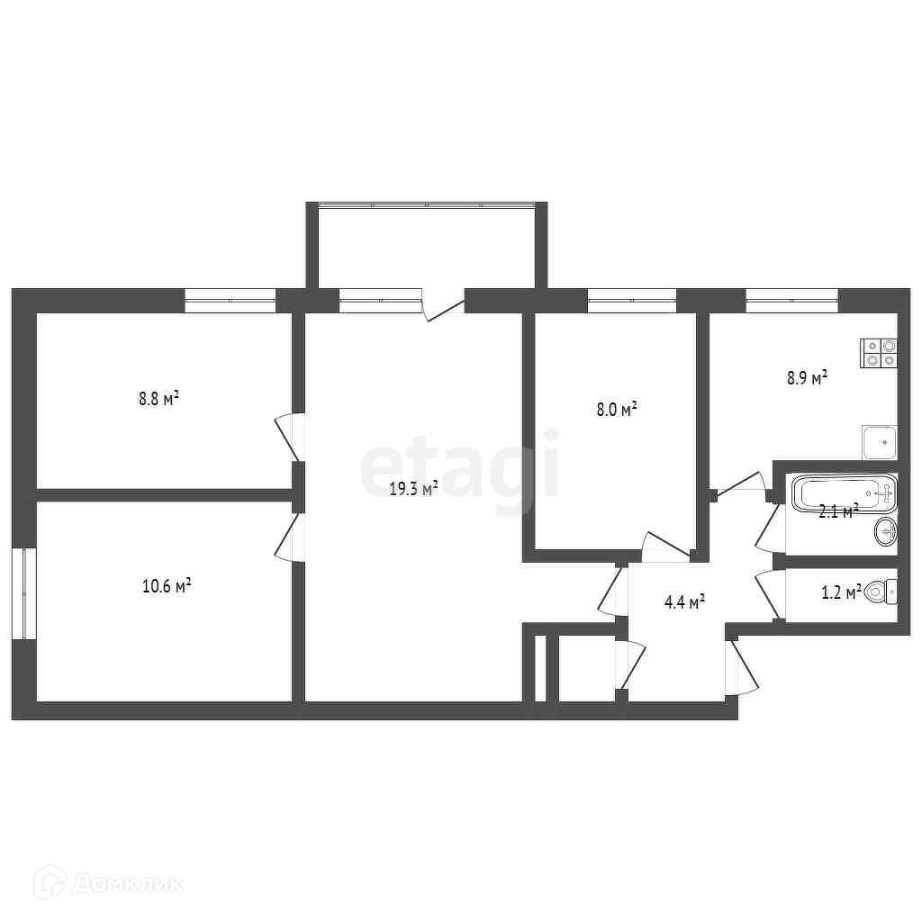 Очень просторная, светлая, теплая. Общая площадь квартиры 61,8 кв.м.