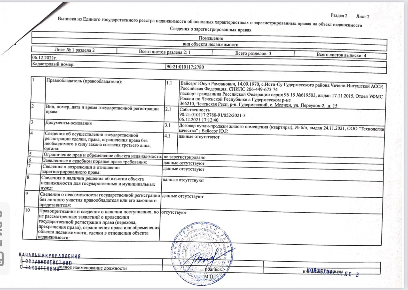 Количество комнат 4