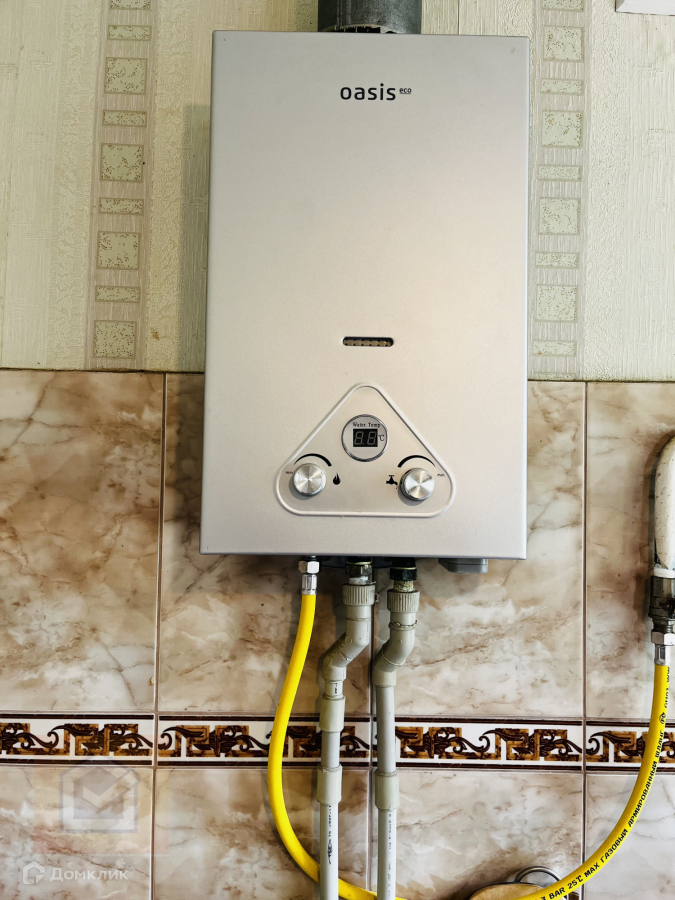 На горячую воду установлена газовая колонка.