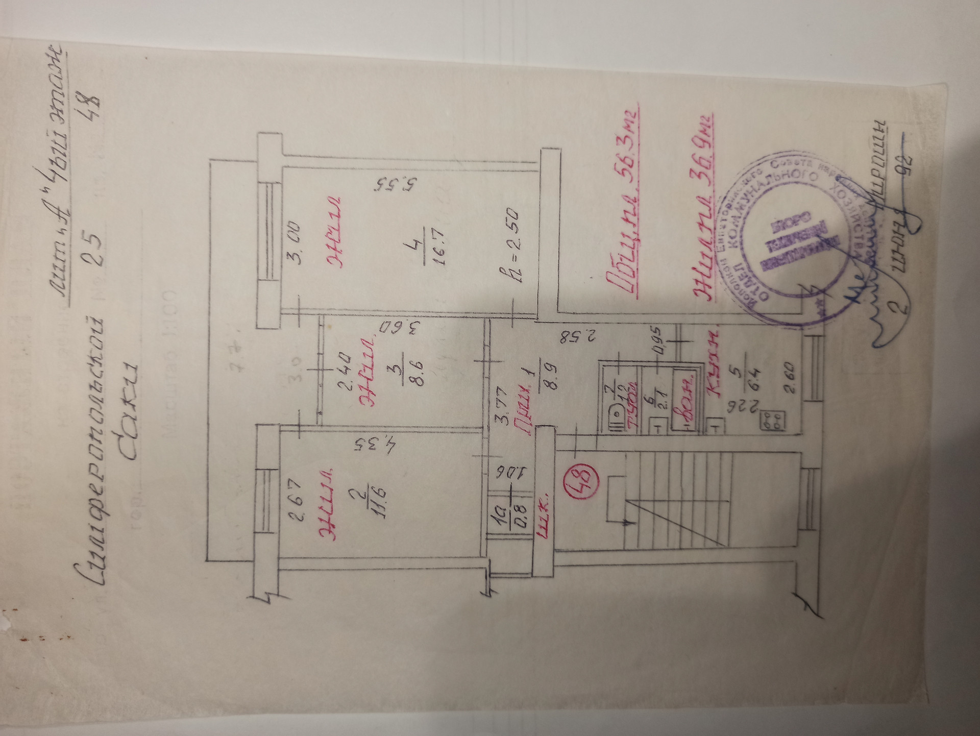 Жилая площадь 36.9 м2