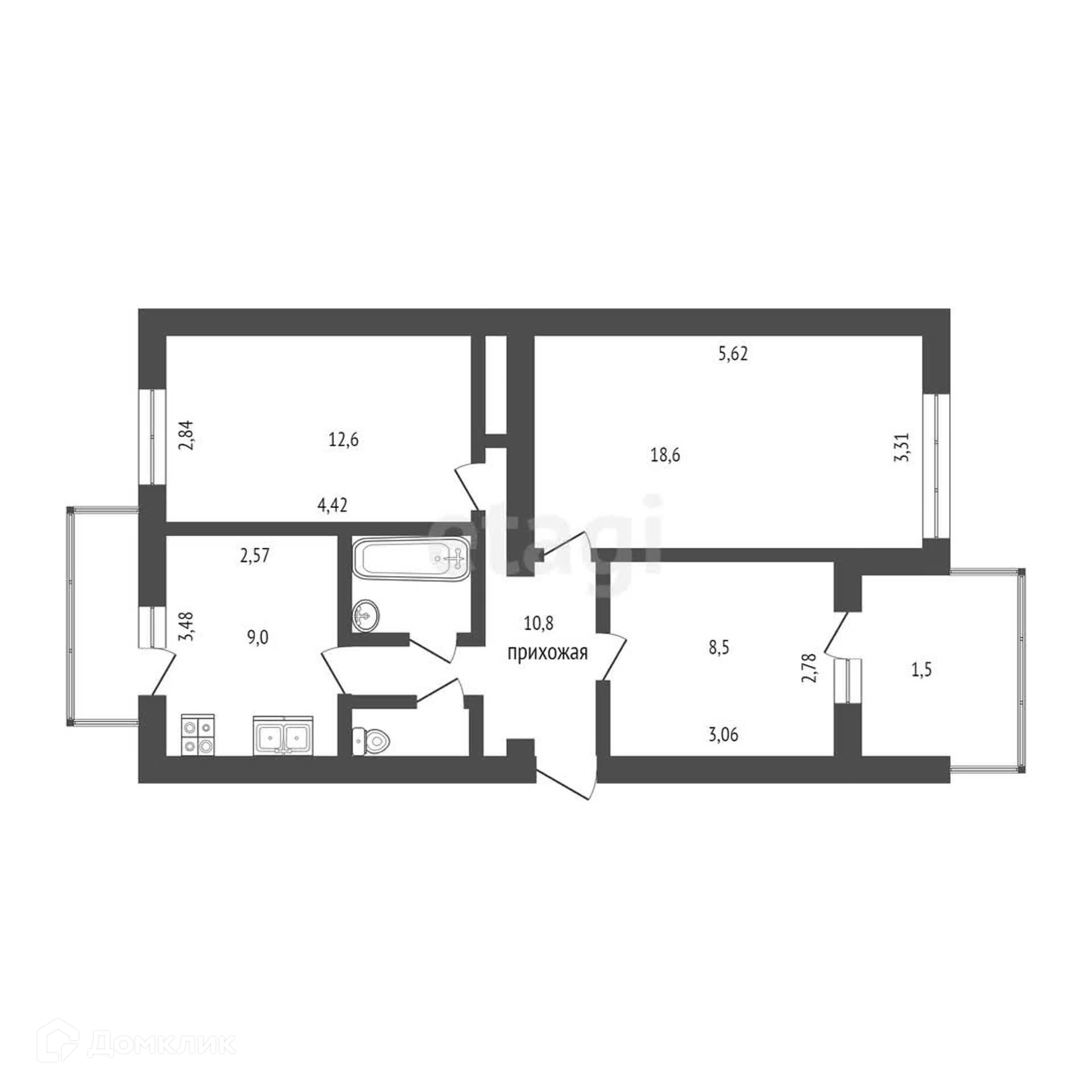 * уютных спален - 12.6, 10 м2
