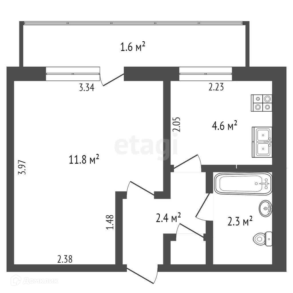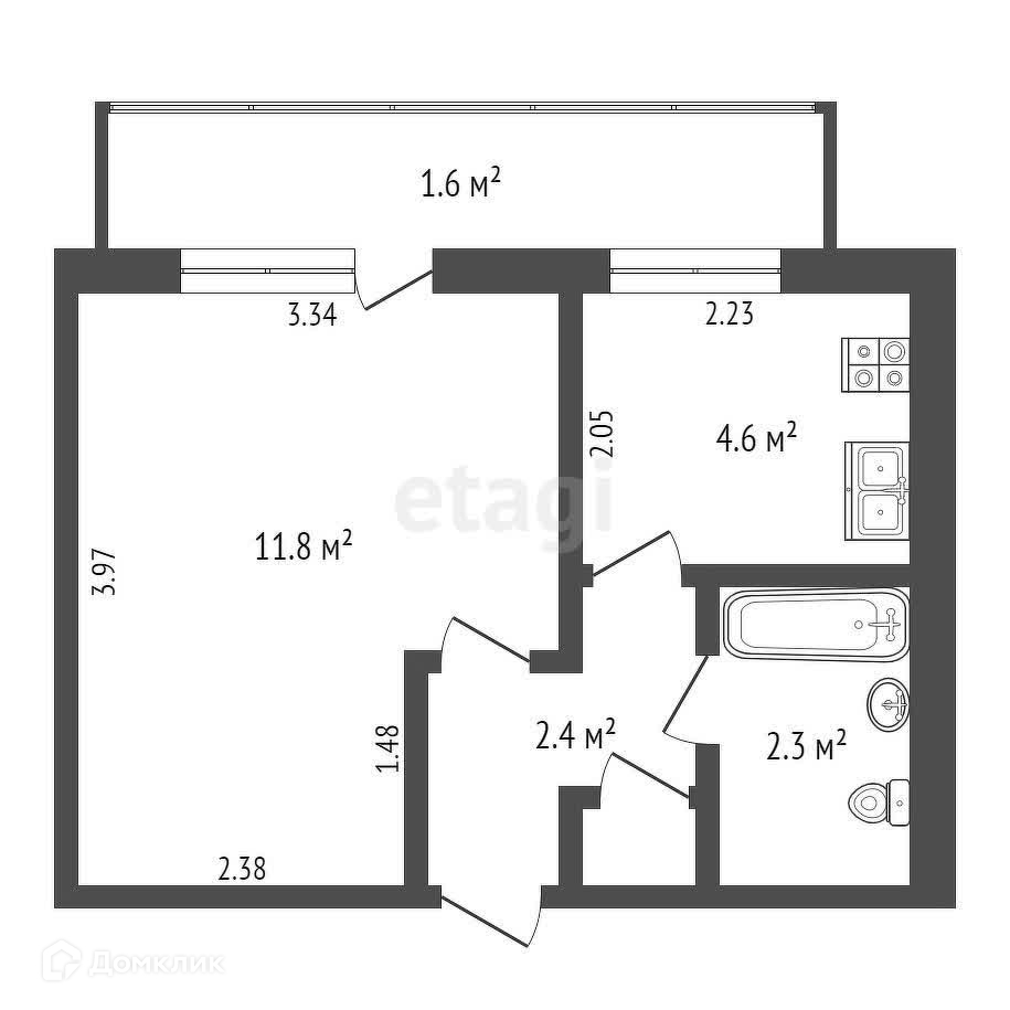 Площадь кухни 4.6 м2