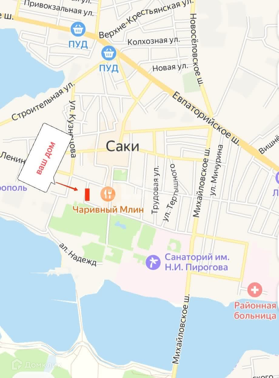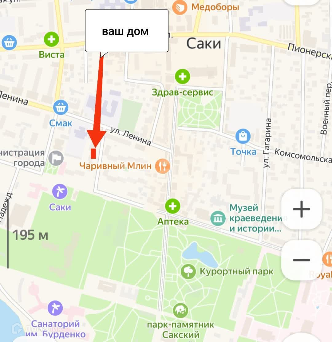 Квартира находится на в самом центре г.Саки, красивый вид из окна, выход из подъезда: с одной стороны на улицу Ленина, с другой стороны на пешую улицу Революции,