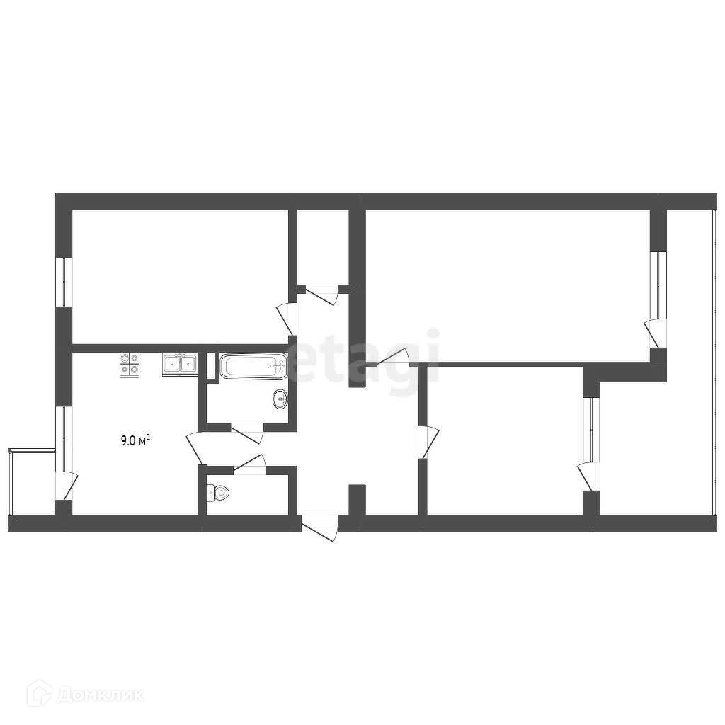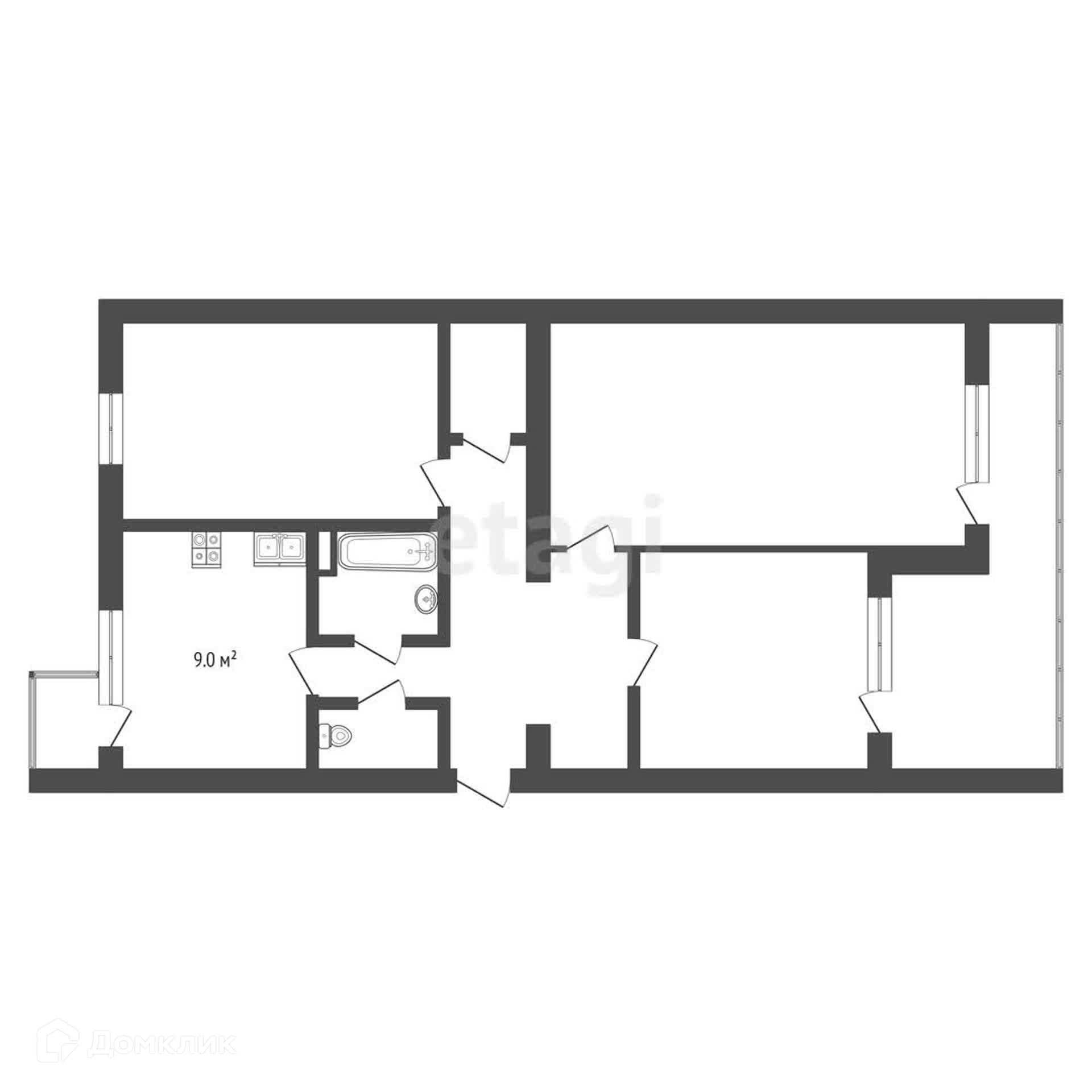 Площадь квартиры 66,3 кв.м., центральное отопление.