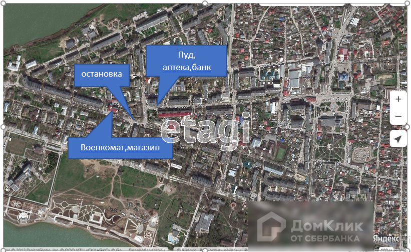 Удобный заезд, в пешей доступности развитая инфраструктура города-курорта, хорошая транспортная развязка.