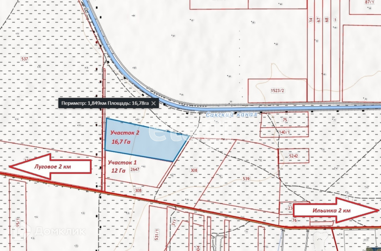 Продается земельный участок 12.26 Га, расположен около трассы, между сёлами Ильинка и Луговое Сакского района, Сизовского сельского совета. Участок второй от дороги. На данное время земля обрабатывается, почва плодородная, можно использовать для выращивания зерновых, огородных и ягодных культур. От участка до с.Ильинка и с.Луговое - 2 км, до г.Саки - 40км. Межевание на стадии оформления. Соседний участок с площадью 16,7 Га также в продаже, при покупке двух сразу возможен разумный торг. Номер в базе: 7636829. Район: Ильинка с.