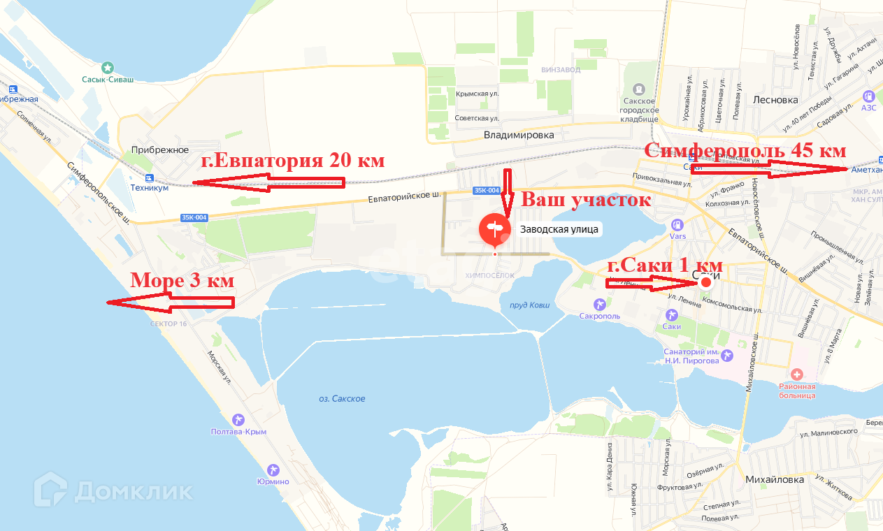 Отличная транспортная доступность: 3 км до центра города Саки, 1 км до грязе-лечебного озера, 3 км до моря и благоустроенных пляжей . Хорошая экология, 310 солнечных дней в году, 6 месяцев длительность купального сезона. Вся необходимая инфраструктура в радиусе 2 км.