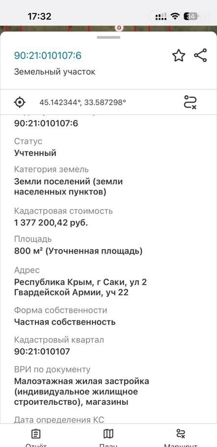 Участок, 8 сот. на продажу в Саках, 35К-004, 47-й километр