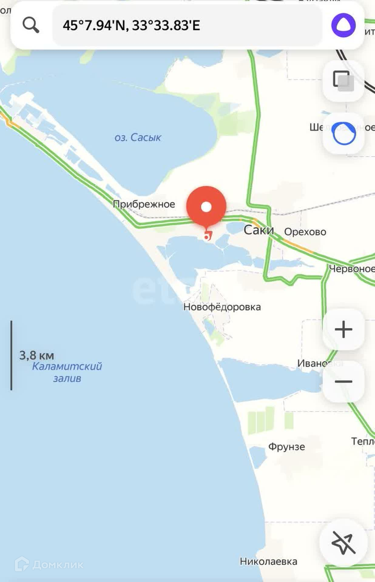 На соседней улице в 150 метрах расположена школа, автобусная остановка, в 500 метрах новый детский сад Чайка, новая набережная, новый спортивно-оздоровительный комплекс, санаторий Саки, санаторий Саксония, санаторий им. Н.И. Пирогова, магазины, аптеки. 2 км до моря и благоустроенных песчаных пляжей протяженностью 8 км.