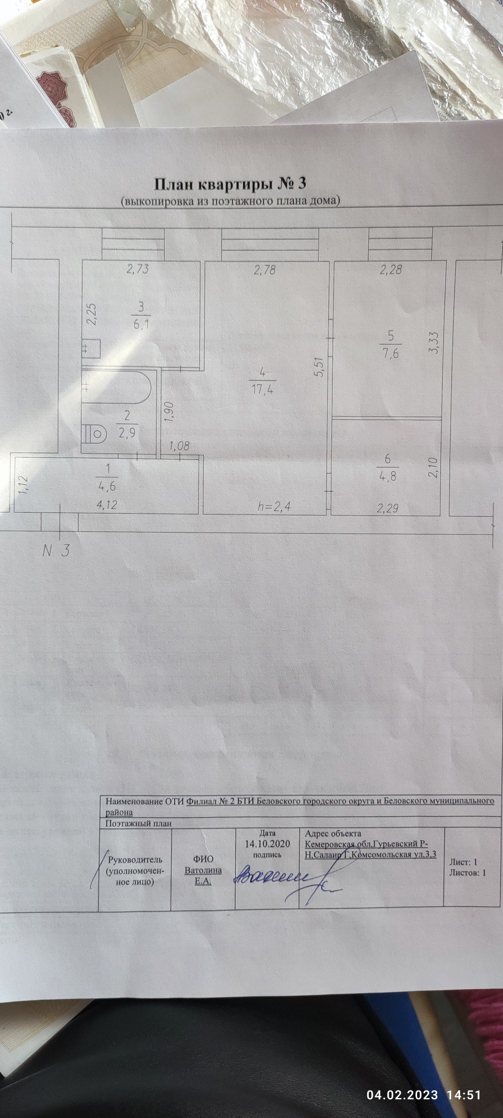 2-комнатная квартира, 43.4 м2, этаж 1 / 4, на продажу в Салаире, Комсомольская улица, 3
