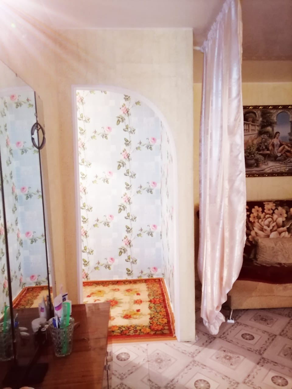Срочная продажа.  Продаю 2 комнатную квартиру общей площадью 44,2 м2 на 3-ем этаже четырех этажного кирпичного дома. Квартира в отличном состоянии, заходи и живи. Дверные проемы оформлены арками. В кухне, спальне - потолочная плитка, в зале – натяжной потолок. Во всех комнатах наклеены обои, на полу новый линолеум. В квартире есть две кладовки.