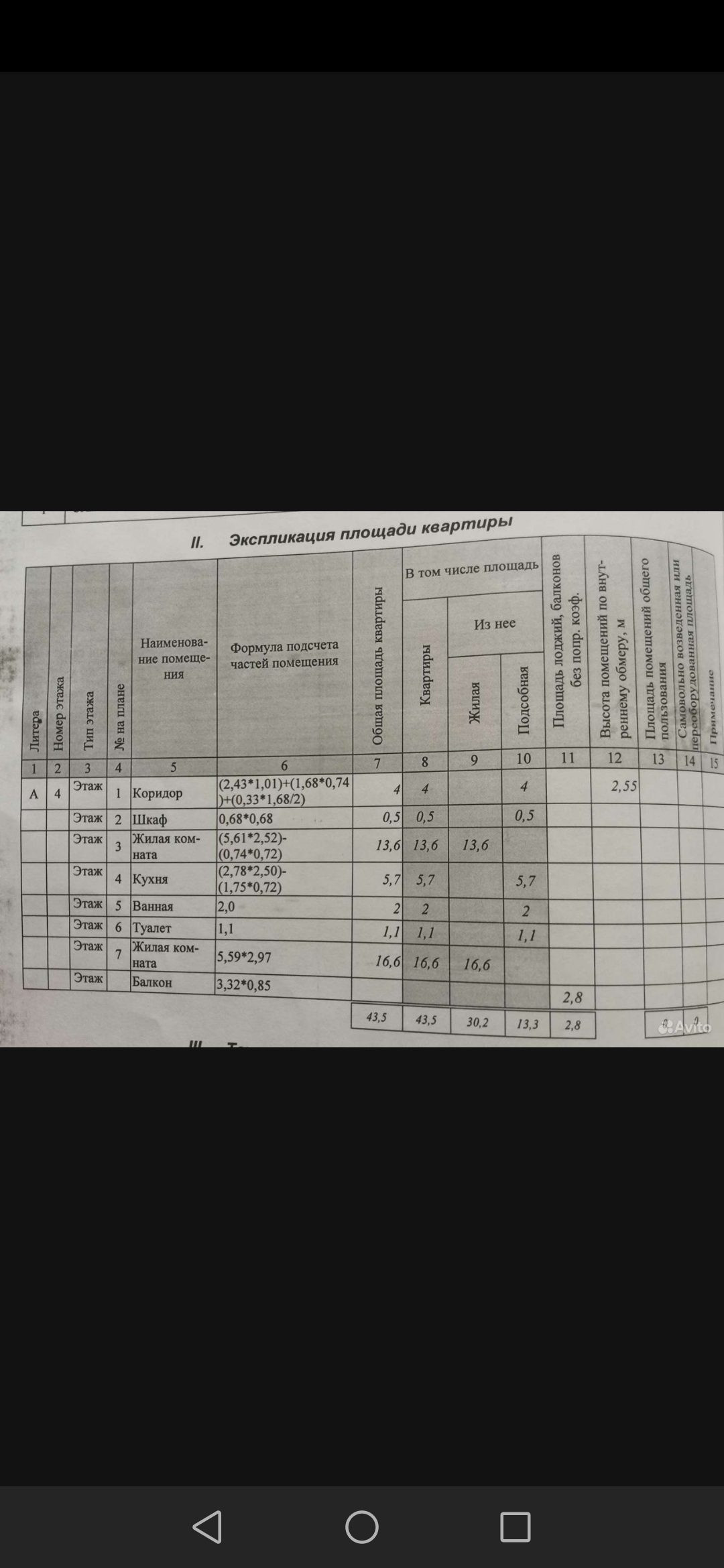 Общая площадь 43.5 м2