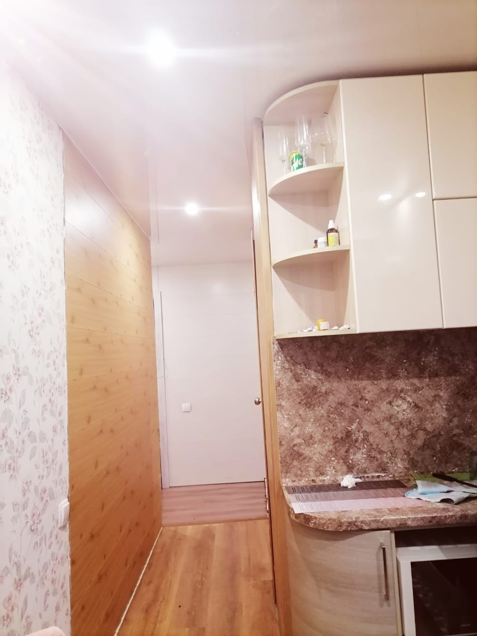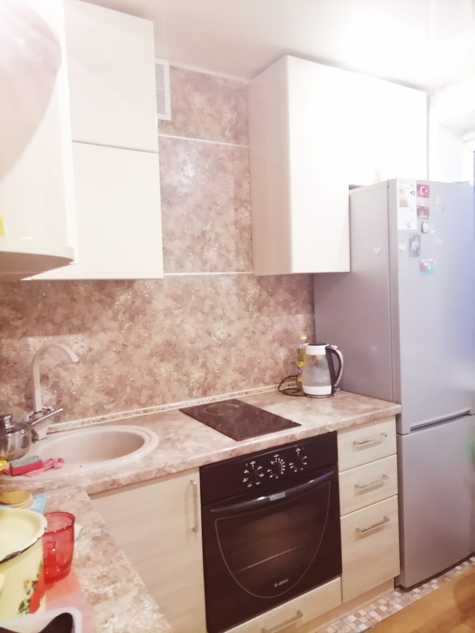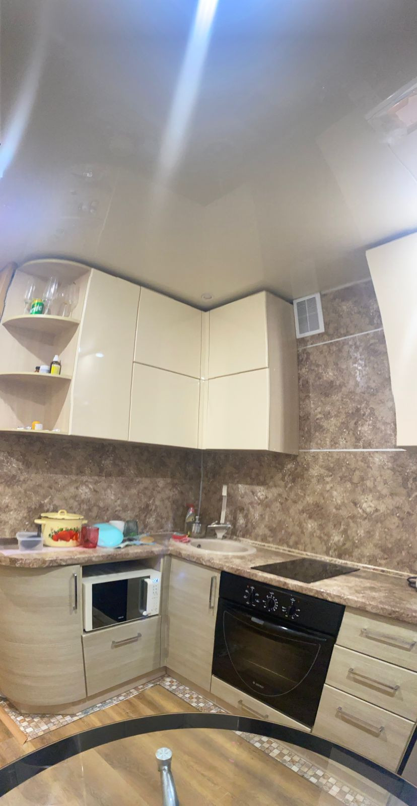 Окна пластиковые. Новые межкомнатные двери, входная дверь. На полу ламинат. Во всех комнатах натяжные потолки. Встроенная кухня, бытовая техника. Сантехника, проводка- новые. Санузел совмещен.