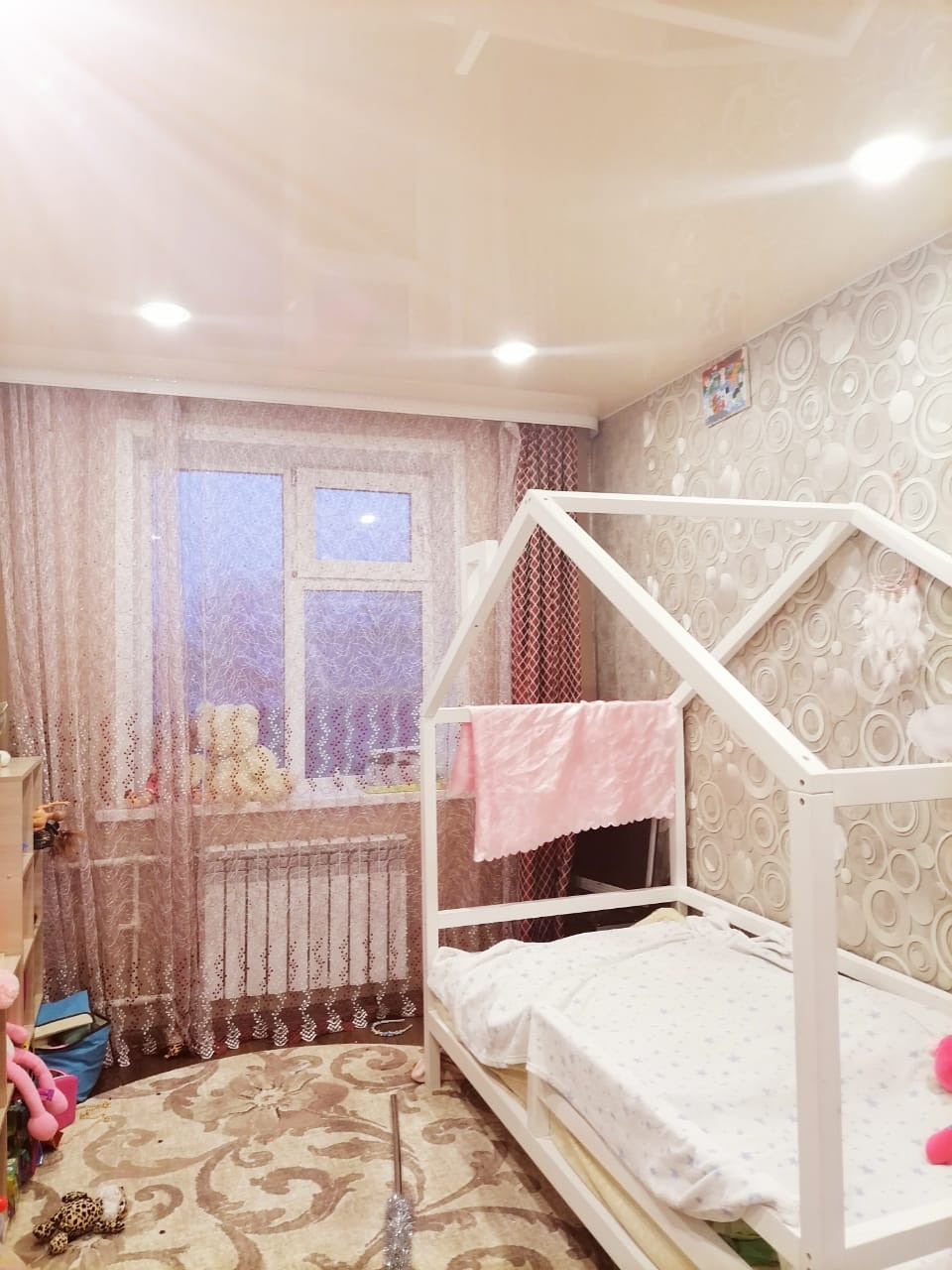 Квартира расположена в центре города: школа, садик, магазины, игровые площадки- все в шаговой доступности.