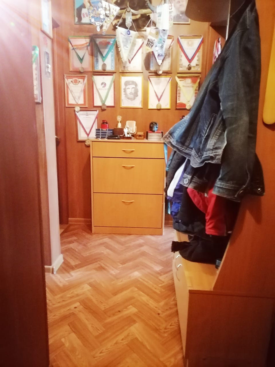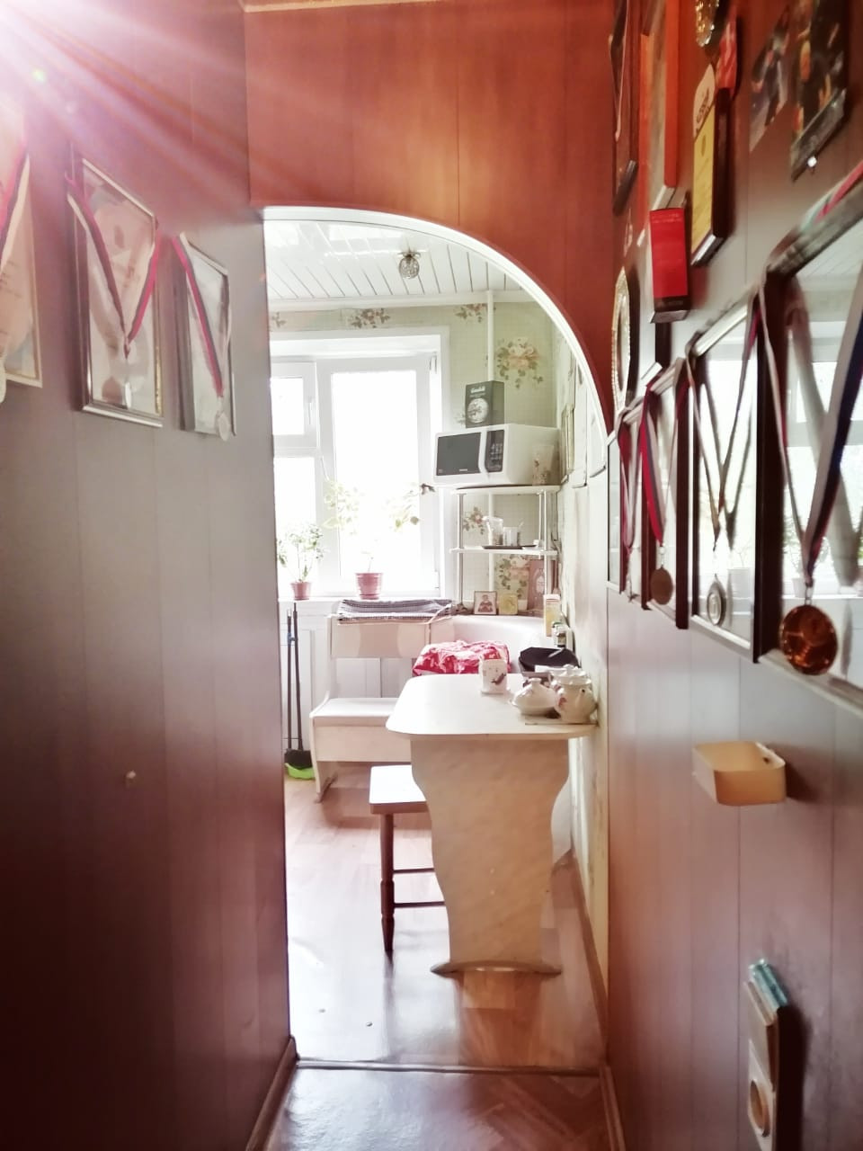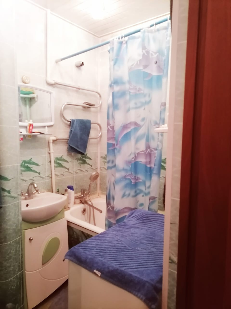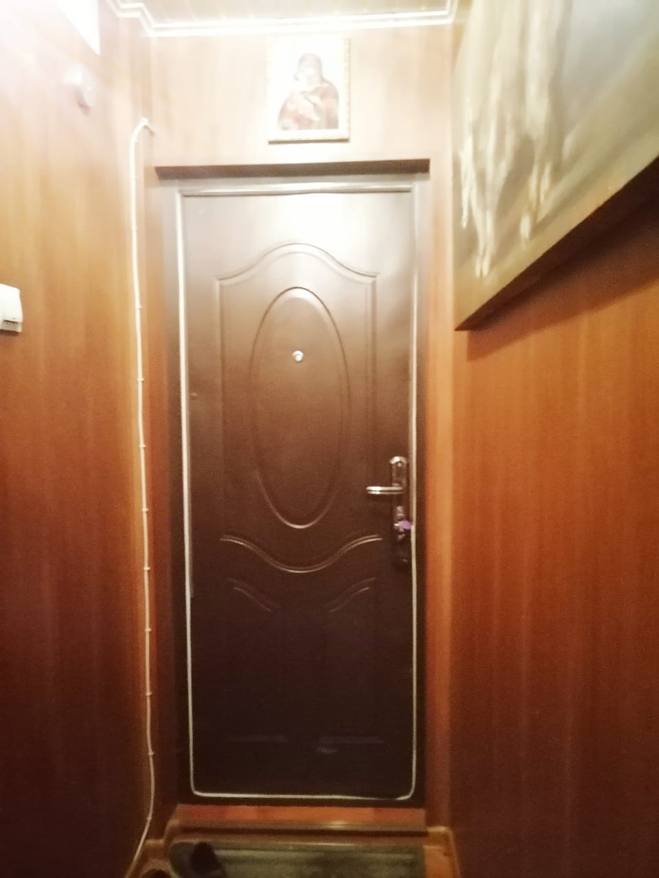 Новые входная, межкомнатные двери. Коридор обшит пластик панелями. Во всех комнатах натяжные потолки, на полу линолеум. Санузел совмещен, есть счетчики на воду.