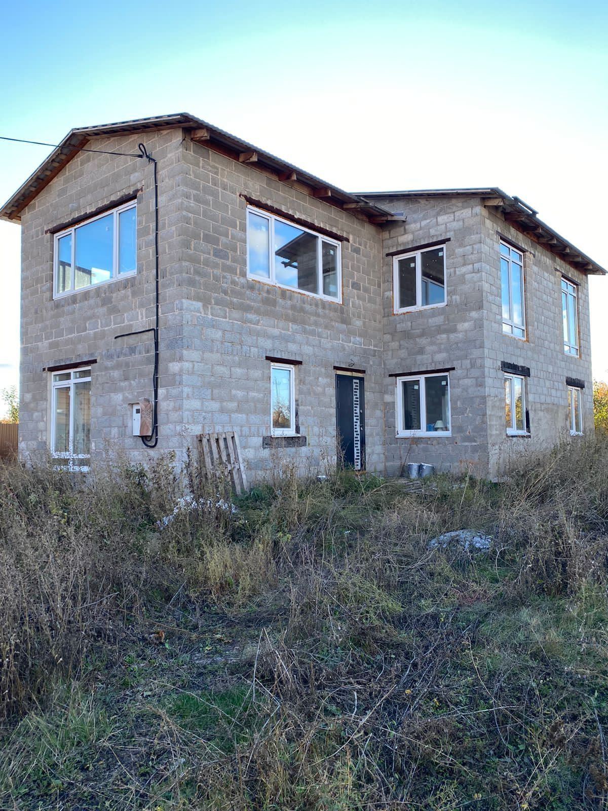 пластиковые окна , крыша утеплена , канализация и электричество заведены в дом