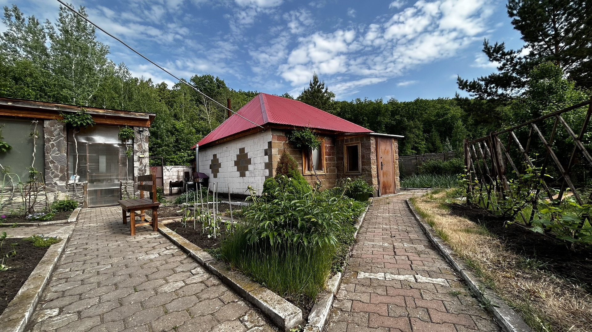 На территории расположены: гостевой 3-х комнатный дом, баня, беседка, теплица, курятник.