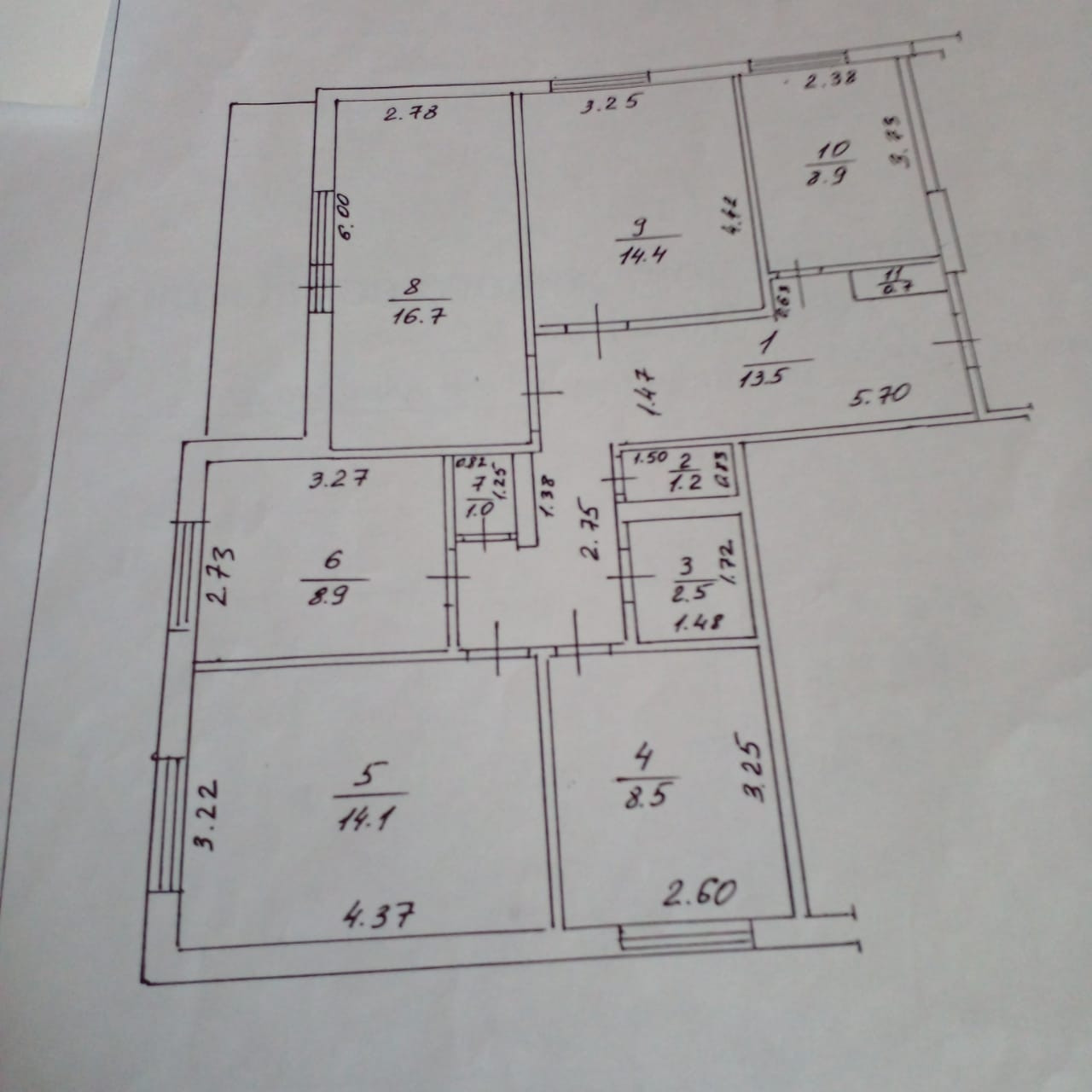 Большая прихожая и кухня, зал 16.7 кв.м., 4 спальни