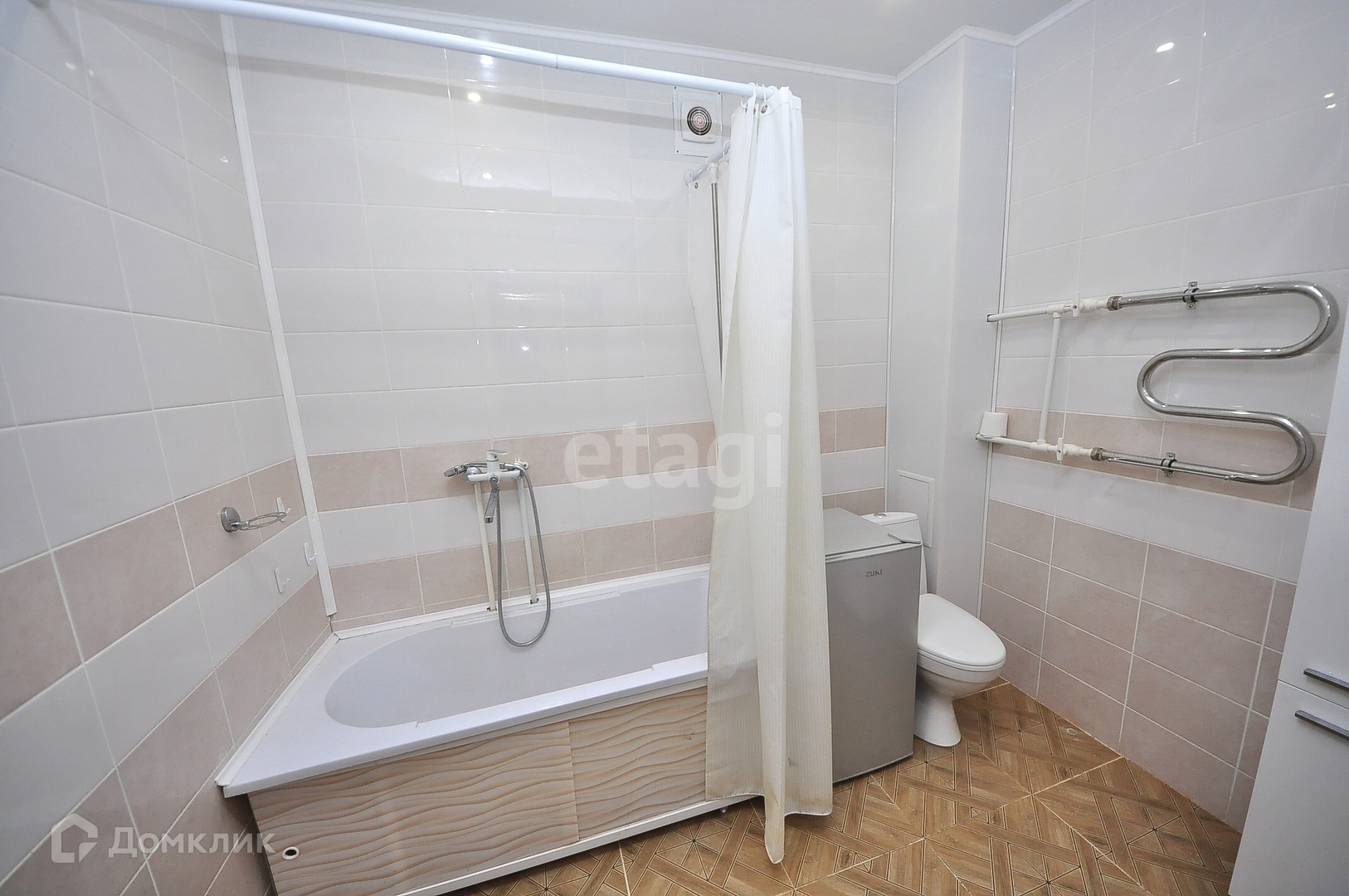 На полу постелен ламинат, потолок натянут, окна заменены на пластиковые. В прихожей плитка. В ванной комнате выполнена заменена всех сантехнических узлов, стены плитка, ванна и унитаз новые. В квартире заменены двери.
