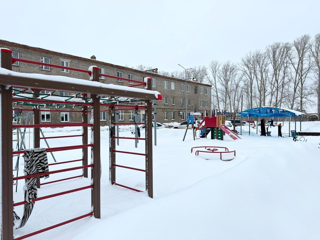 Во дворе удобная, просторная парковка, построена новая детская площадка.
