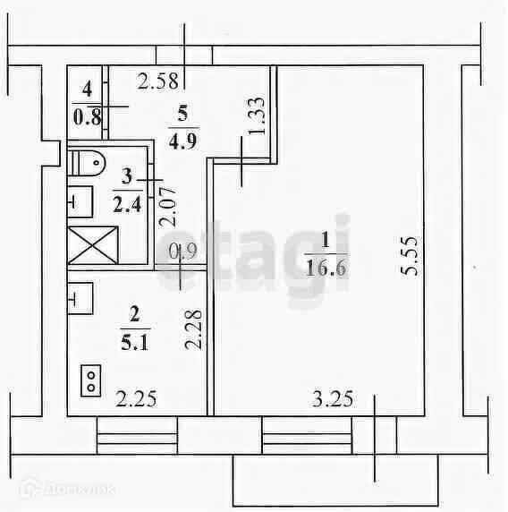 Площадь кухни 4.9 м2