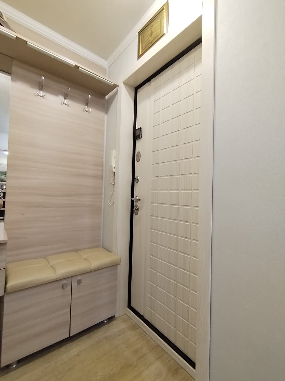 Балкон обшит, утеплен. В прихожей есть вместительная кладовая.