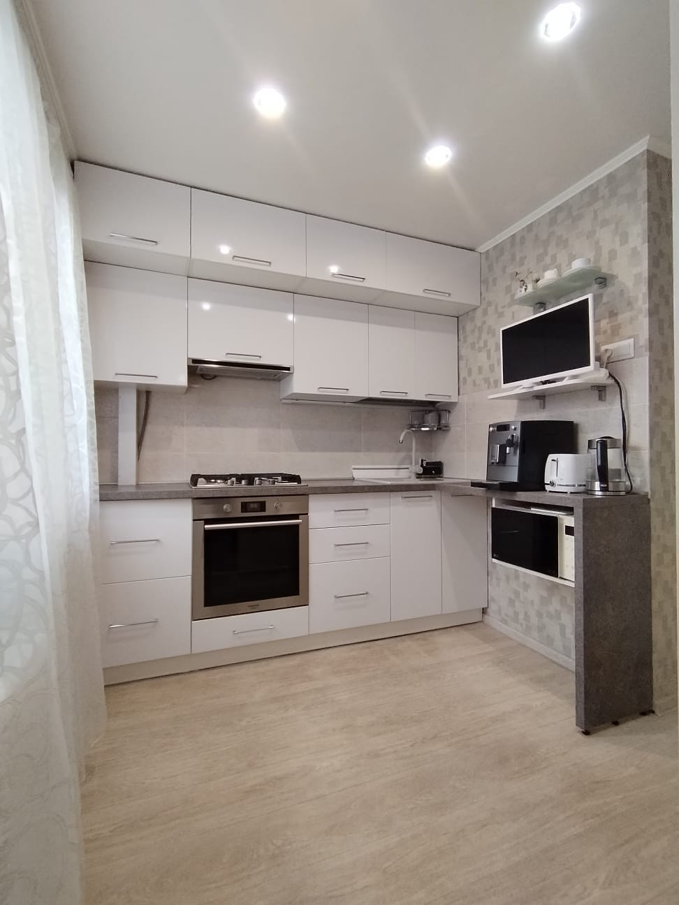 В квартире выполнен качественный евроремонт, что позволит новым владельцам сразу начать комфортное проживание без дополнительных вложений.. Стены выровнены,вся проводка заменена. Новые межкомнатные двери. Входная дверь сейфового типа. В ванной выложен кафель. Счетчики вода,газ. Трубы полипропиленовые. На кухне установлен качественный гарнитур,столешница с евроспилом, раковина искусственный камень, фартук из кафеля.