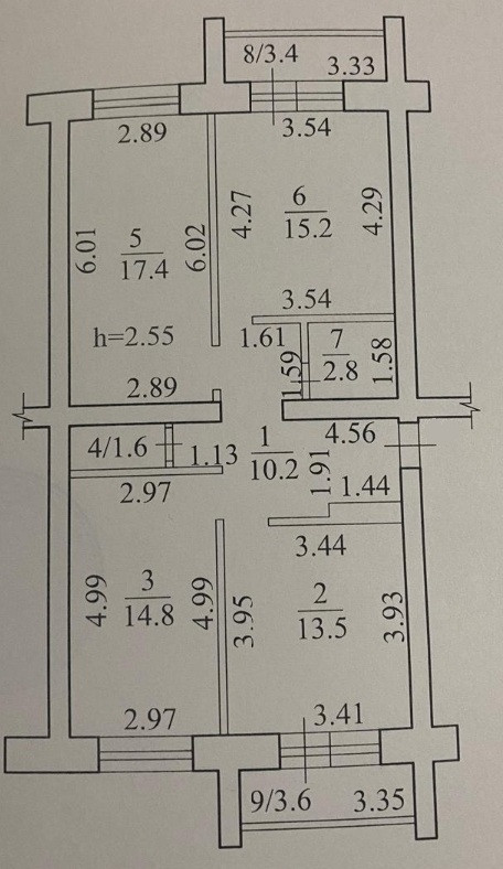 Высота потолков 2.55 м