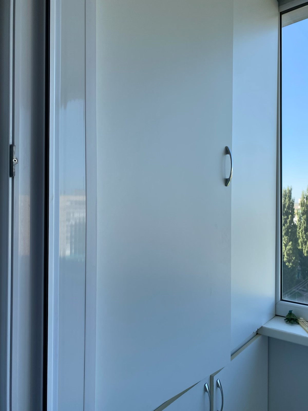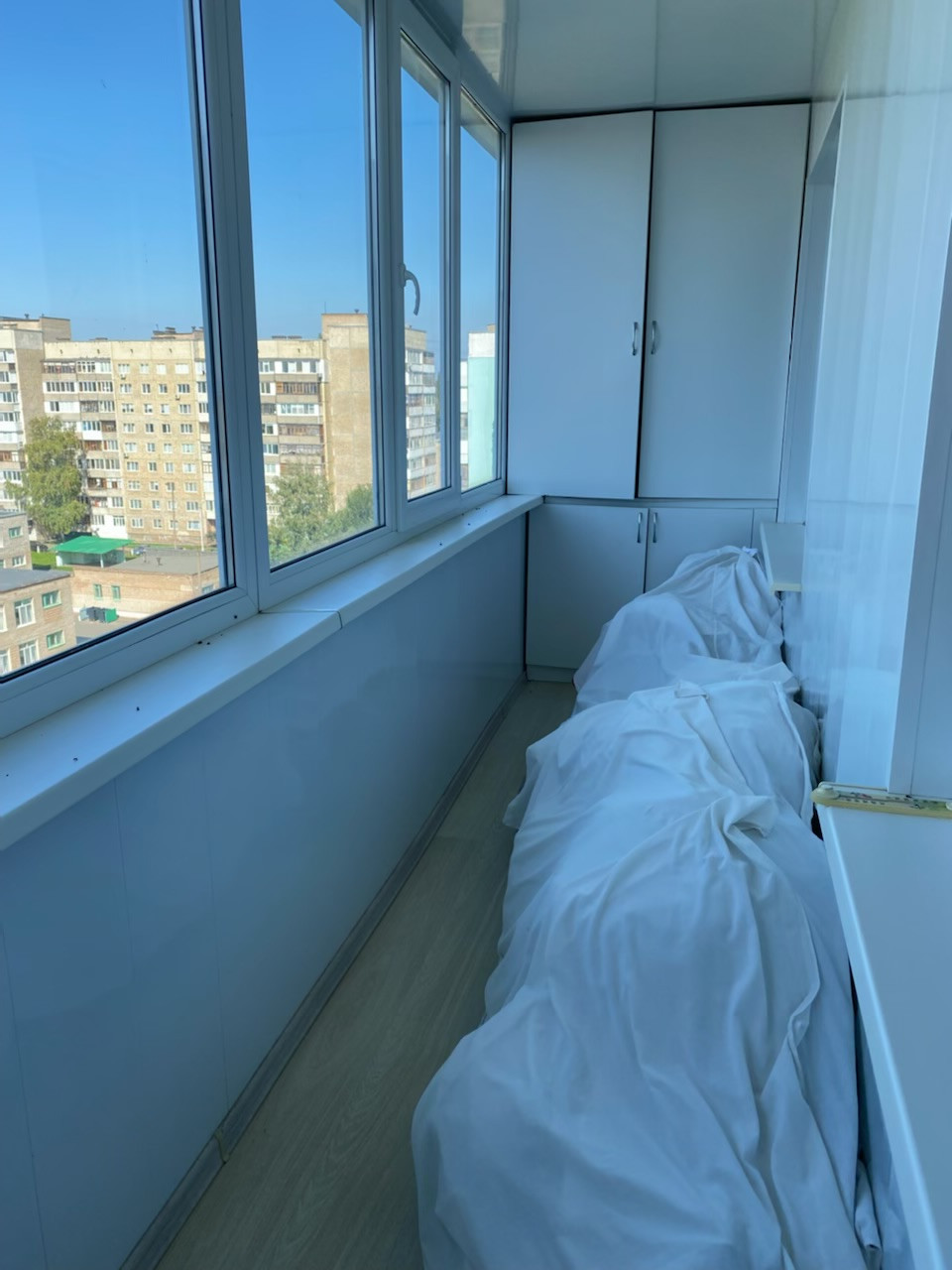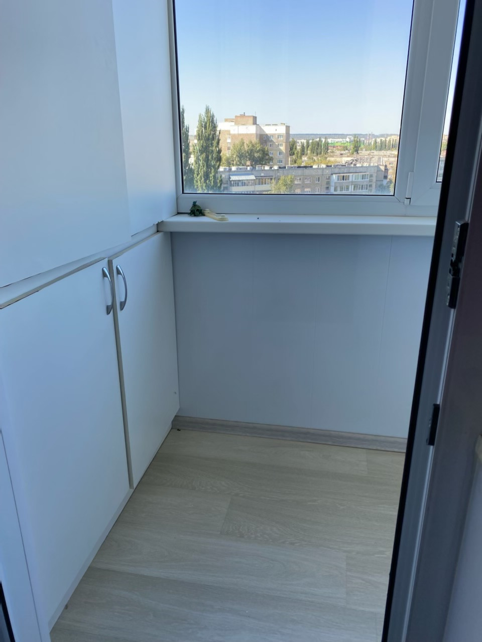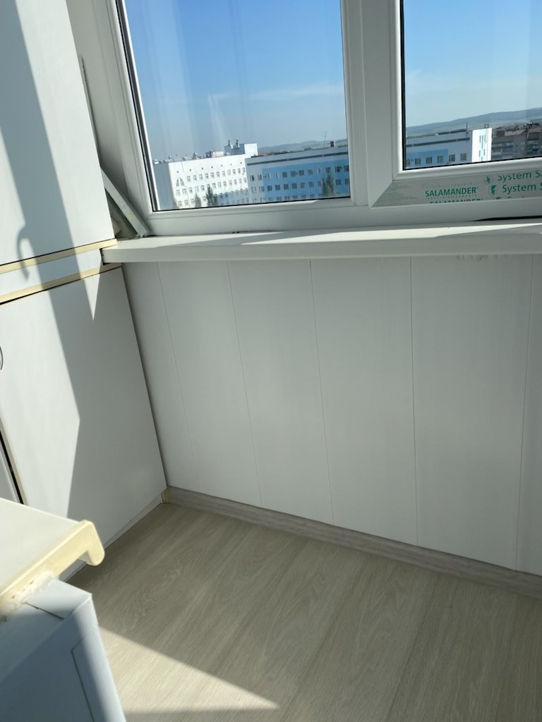 2. Оба балкона застеклены: 2-х камерные, с профилем Salamander и механизмом Rehau. Балконы утеплены и обшиты, уложен ламинат и установлены шкафы. Сделано очень красиво!