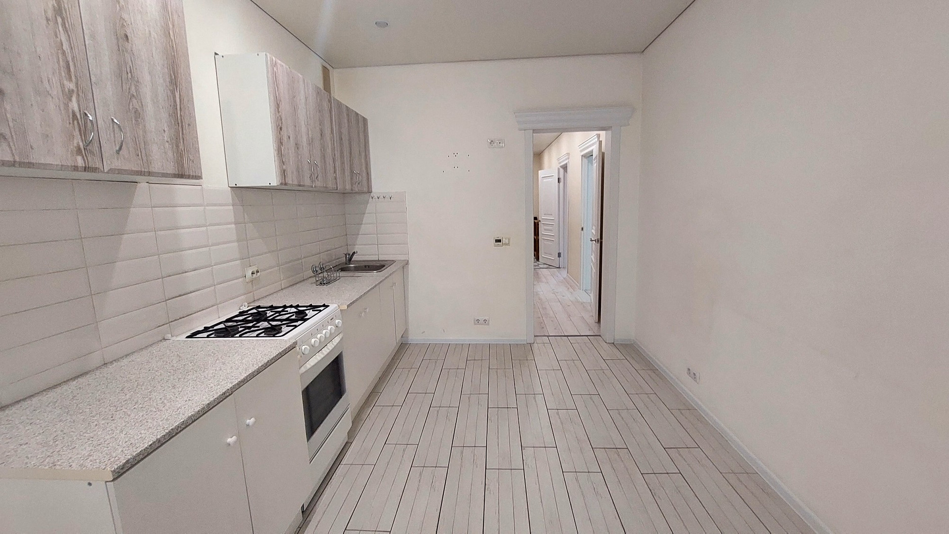 В квартире выполнен качественный ремонт. Заменена вся проводка, полностью выровнены полы и стены. На полу ламинат и керамогранит. На кухне тёплые полы, во всех комнатах пластиковые окна. Новая сантехника. Лоджия застеклена двойным стеклопакетом, установлены межкомнатные двери из массива.