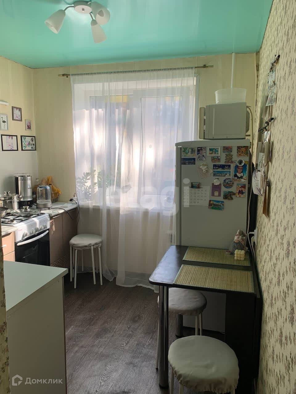 В дар остаётся кухонный гарнитур, кухонный стол-книжка, мягкая мебель, 2 встроенных шкафа-купе, 2-хспальная кровать.