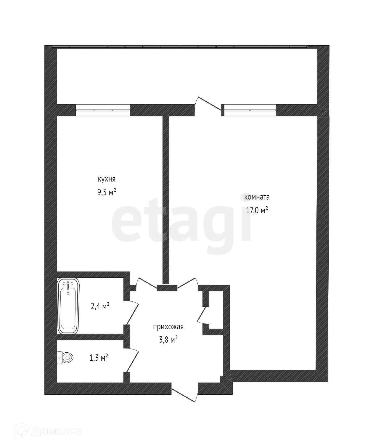 Общая площадь 34.4 м2