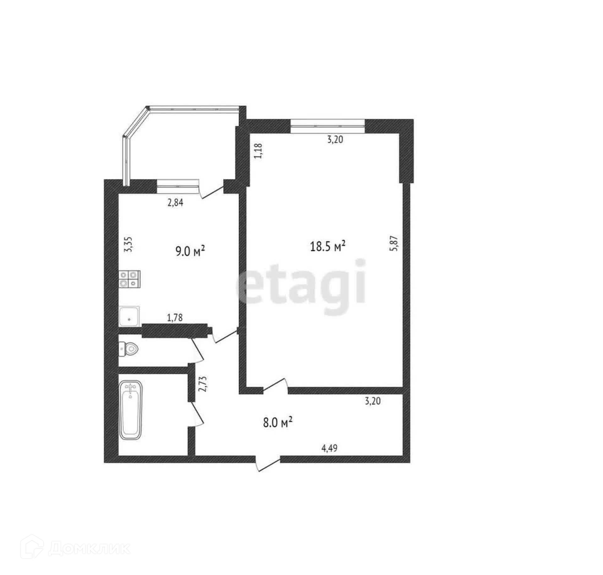 Балкон, лоджия 1 балкон