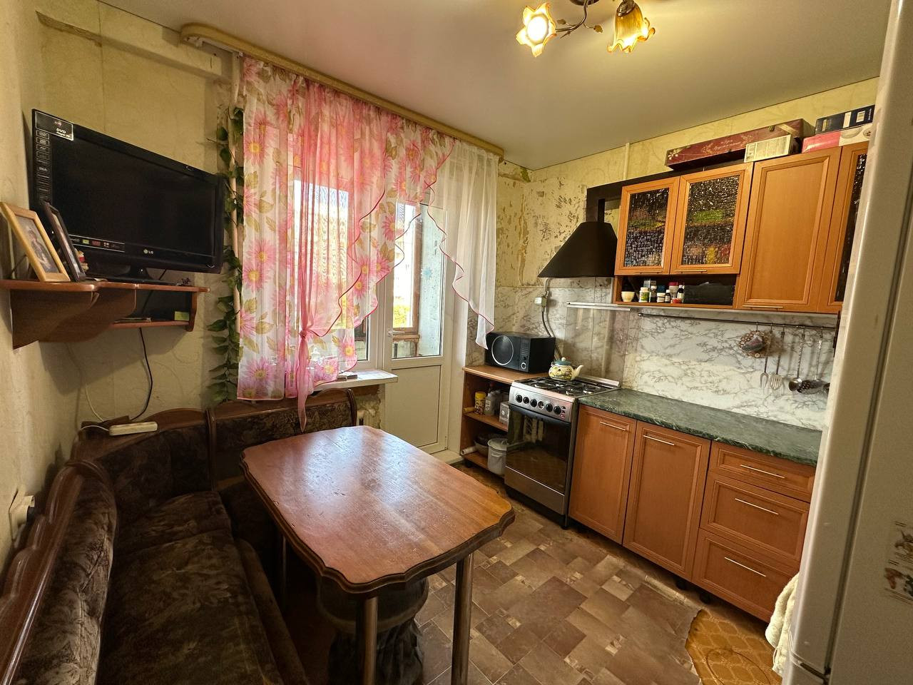 В этой квартире вас ждут белые натяжными потолки, просторная застеклённая лоджия, установленный водонагреватель и заменённые полипропиленовые трубы.