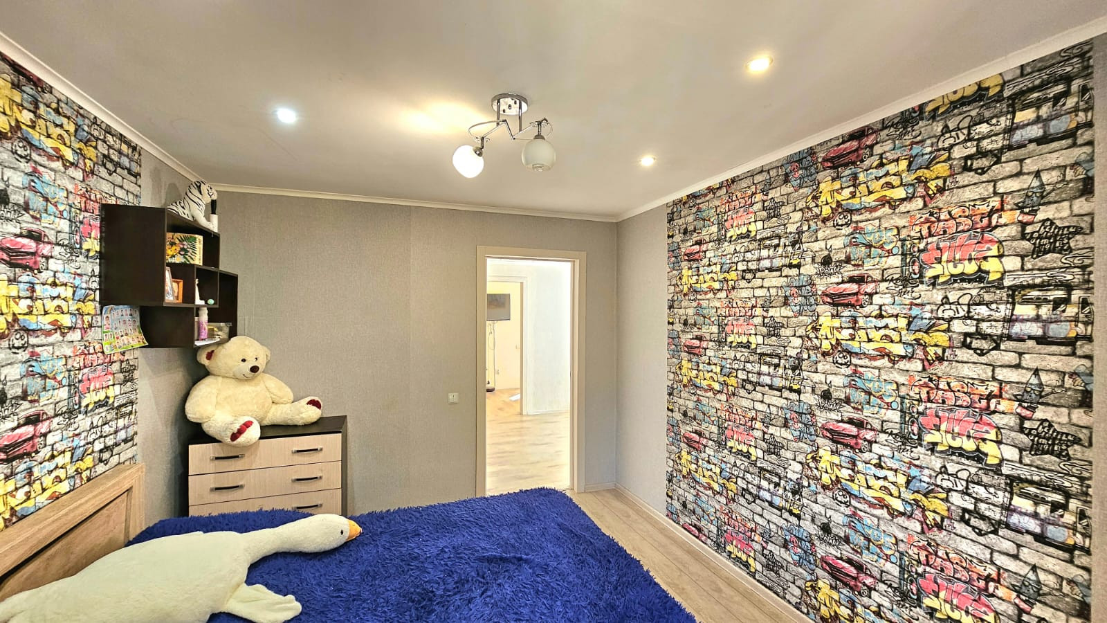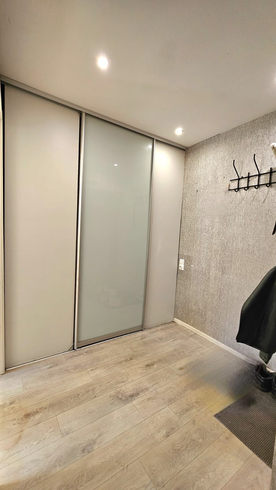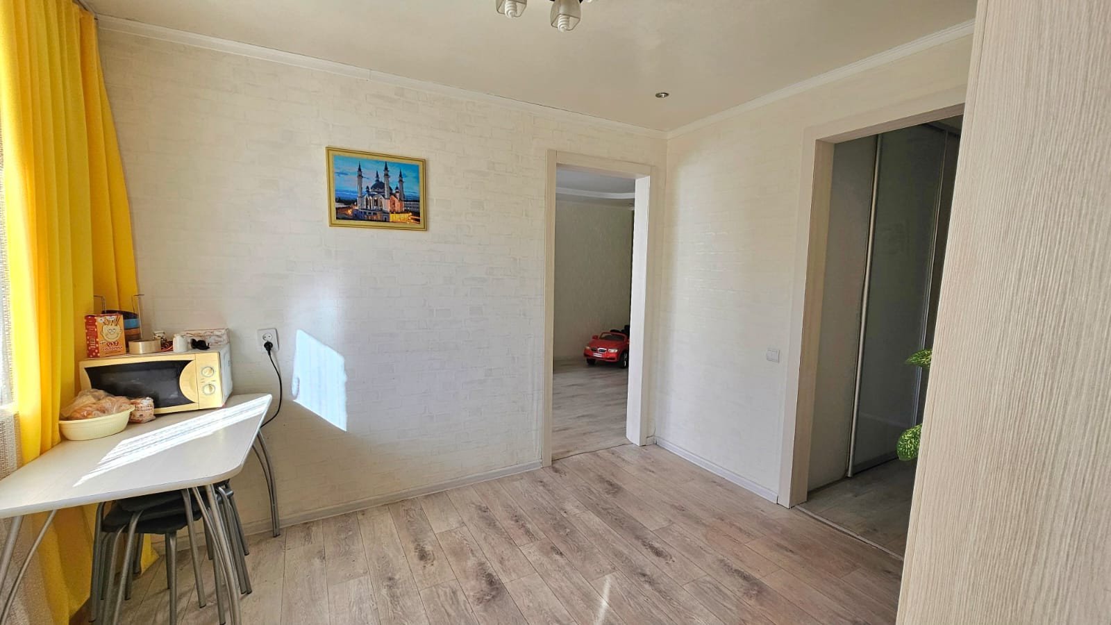 В квартире интересная перепланировка, в прихожей большой шкаф-купе (гардеробная), раздельный санузел, комната для приготовления пищи отдельна от зоны столовой.