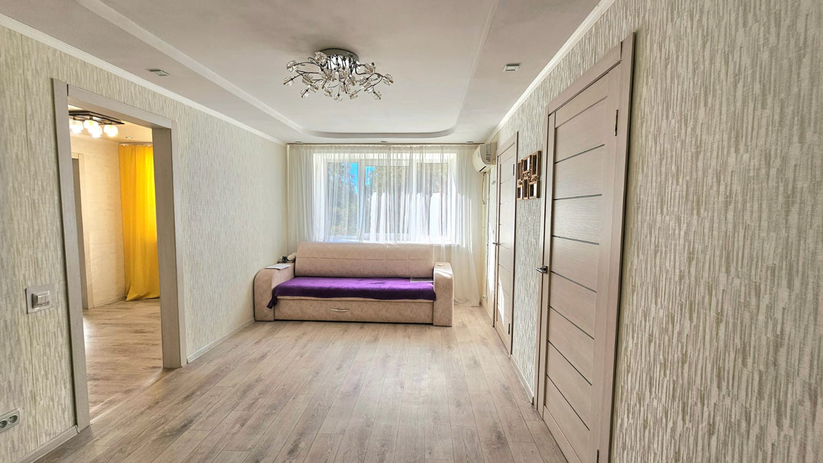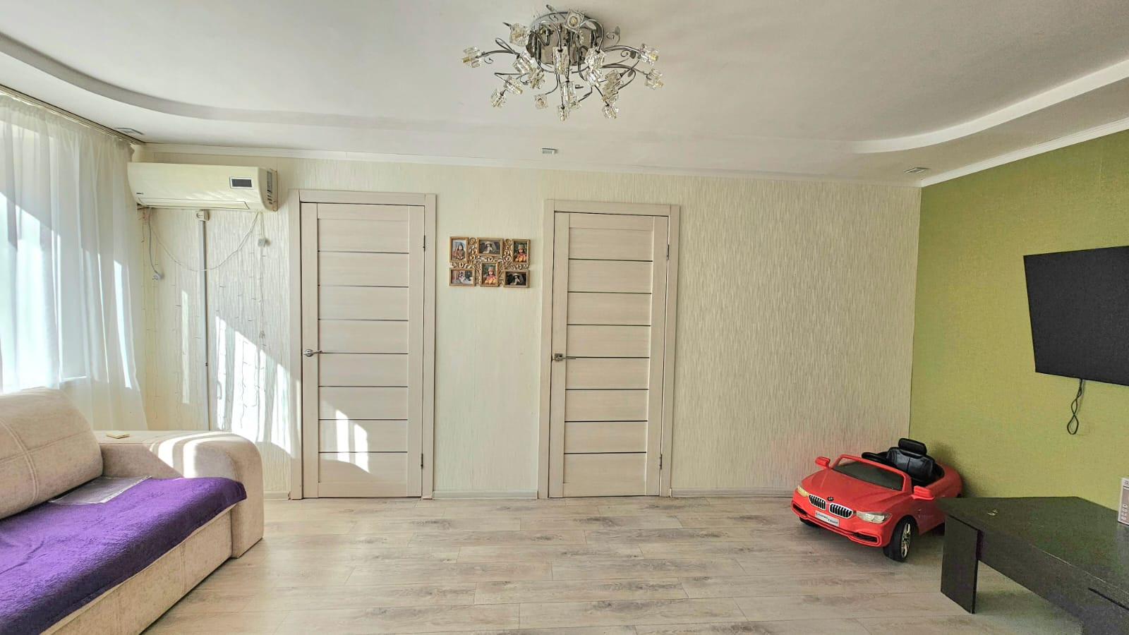 В гостиной установлен кондиционер, который остаётся новым владельцам.