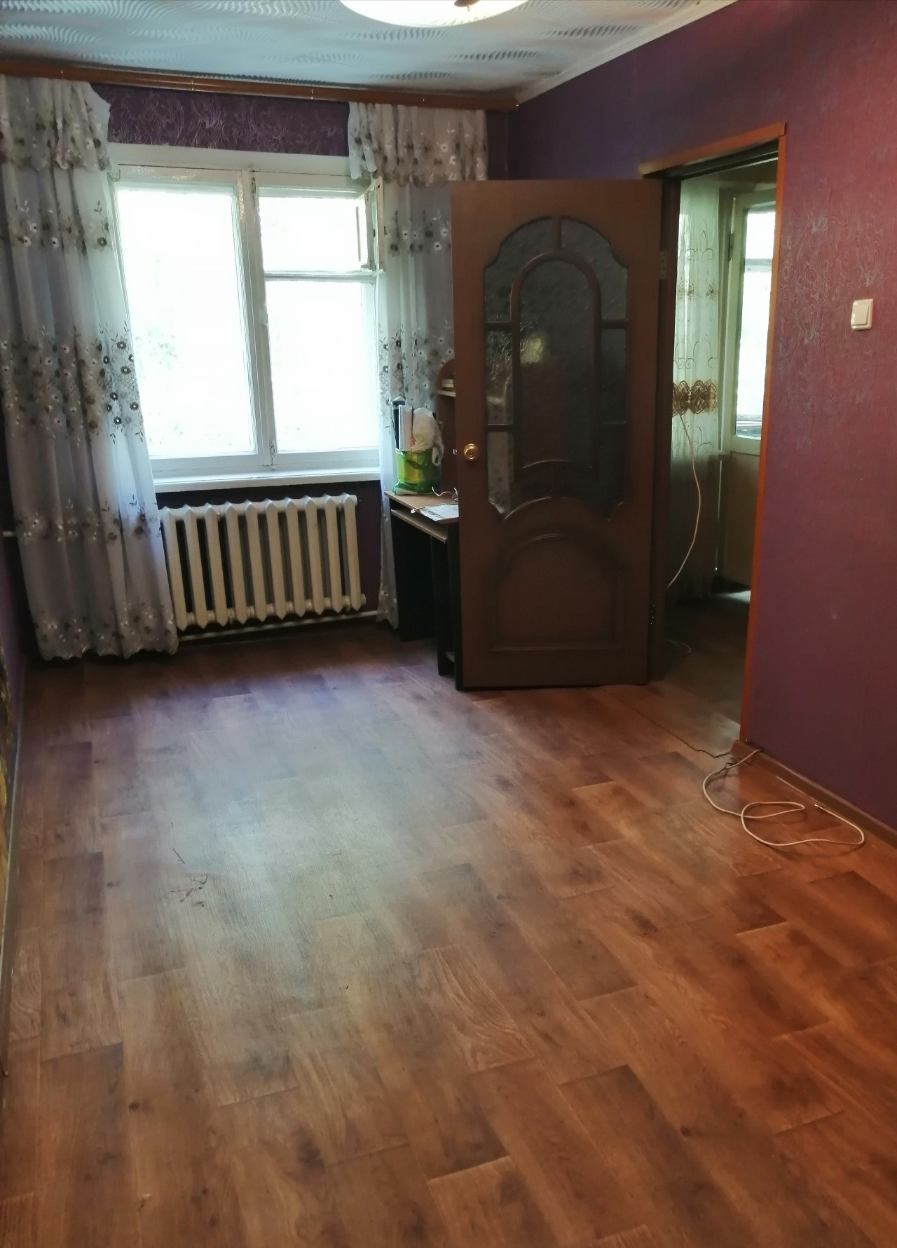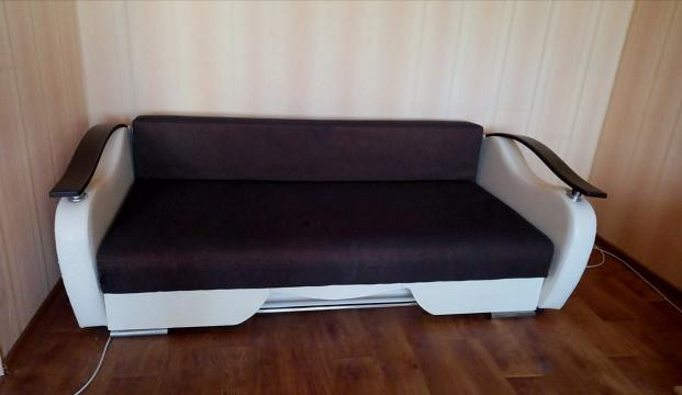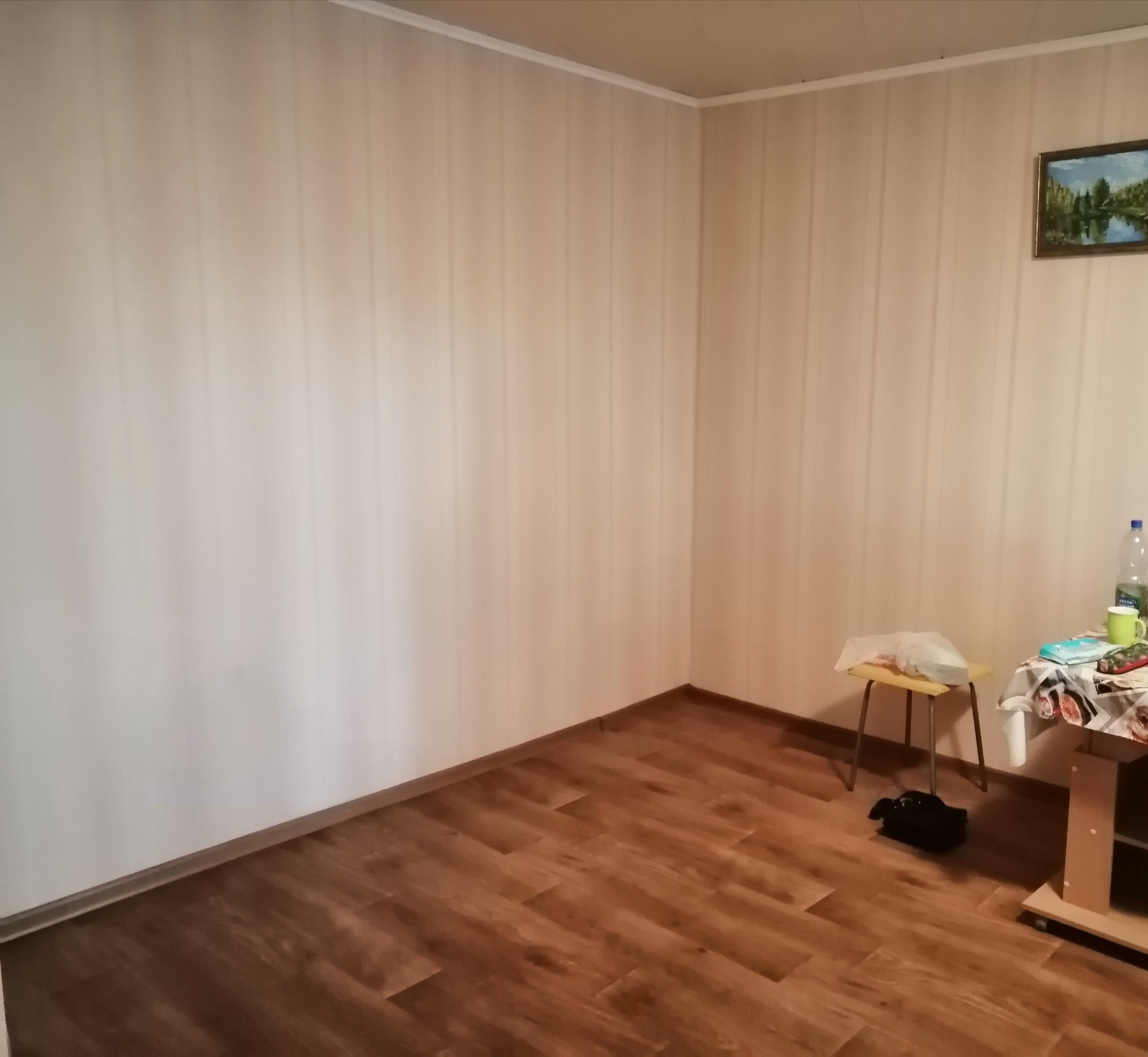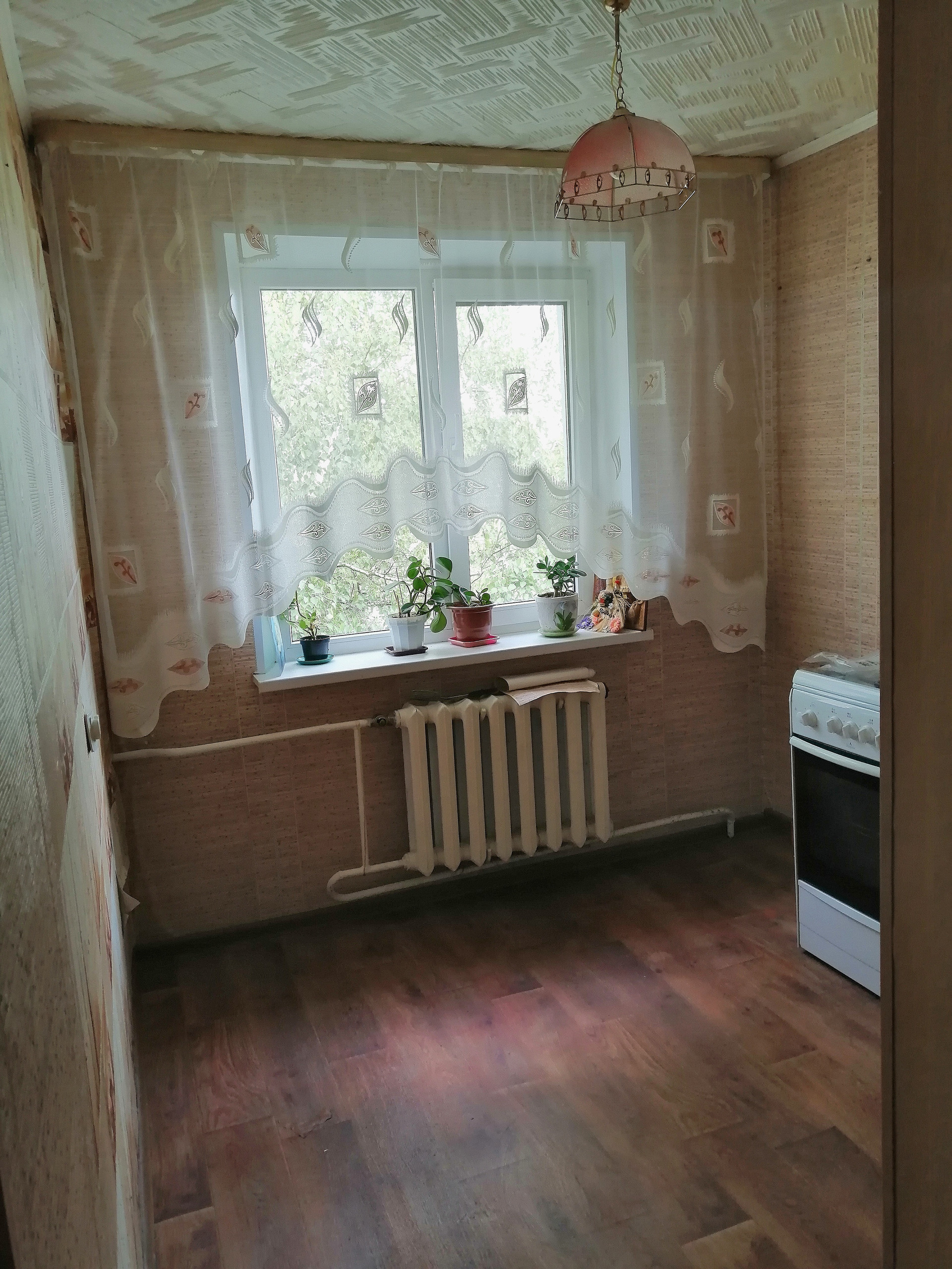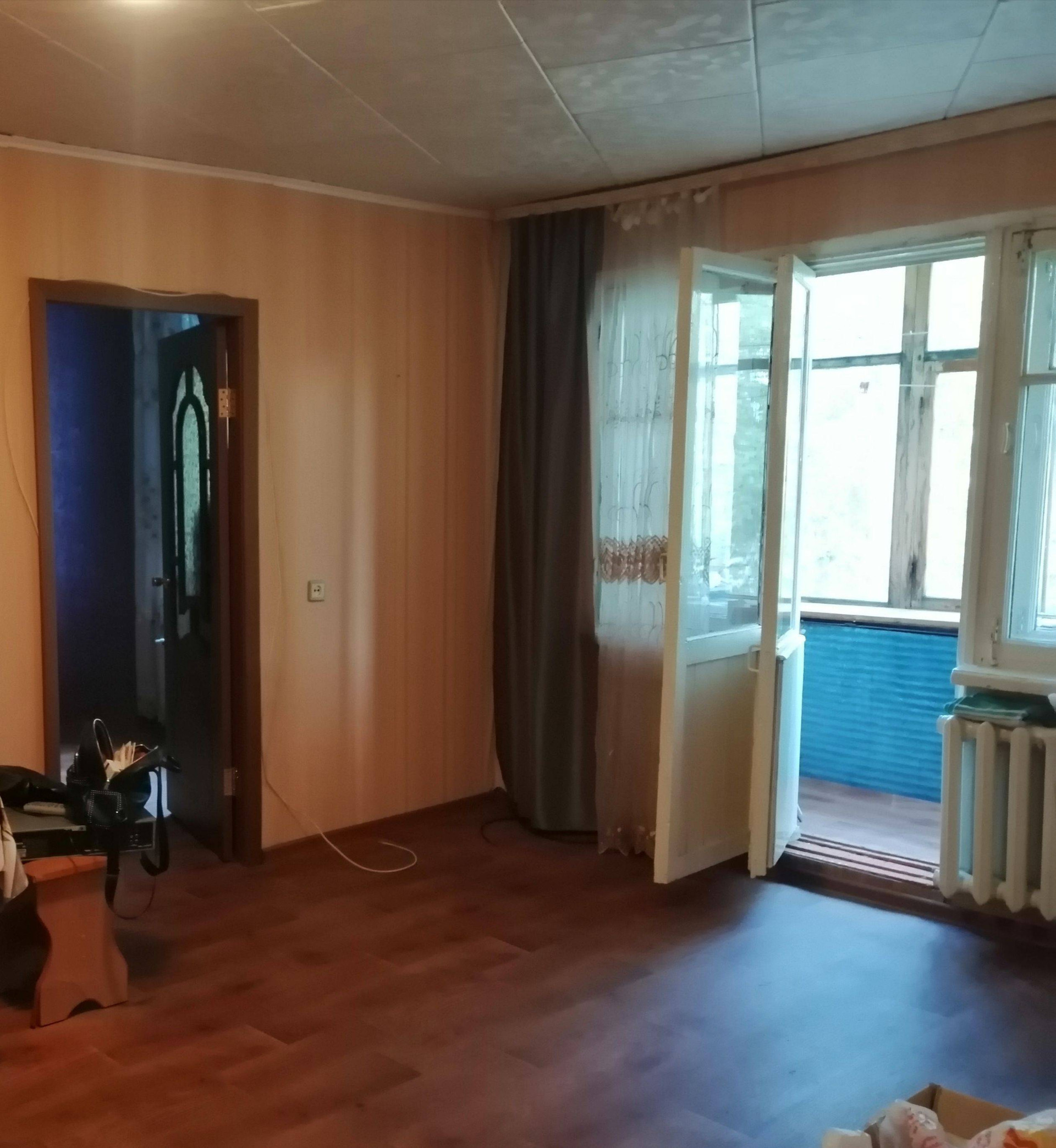 Квартира тёплая, не угловая, частично меблированна. Есть диван, шкаф, столик, табуретки, плита с духовкой и тумба на кухне. Квартира тёплая, не угловая, соседи тихие, окна и балкон выходят на детский сад.
