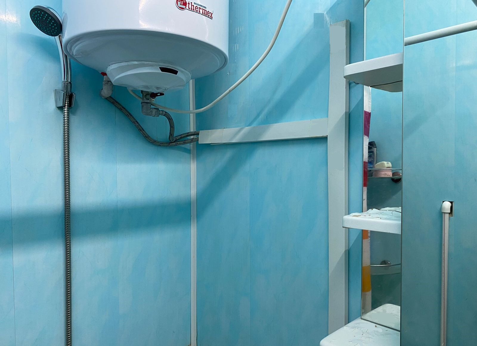 Собственный сан.узел, с горячей водой, душем и туалетом.