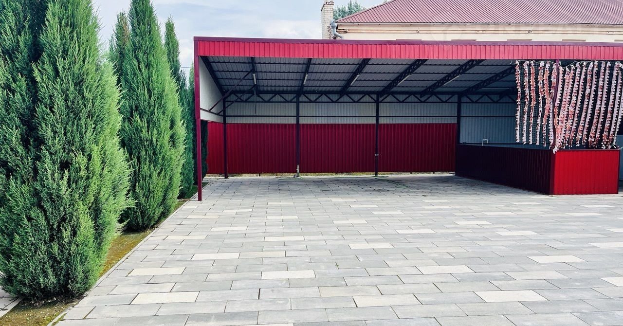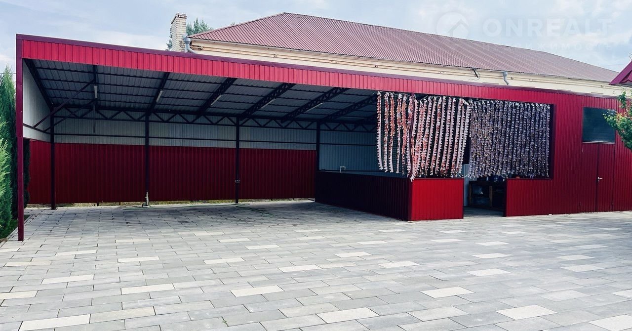 отапливаемый душ, раковина и санузел; хозсклад; беседка с мангальной зоной; навес на три машиноместа, примыкающий к забору (место можно использовать под кафе или магазин), моечное место для авто с водоотведением, система ливневой канализации