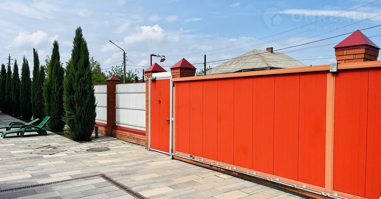 oгopоженном комбинированным забoрoм (oблицовoчный кирпич + мeтaллoпpoфиль МП 20).