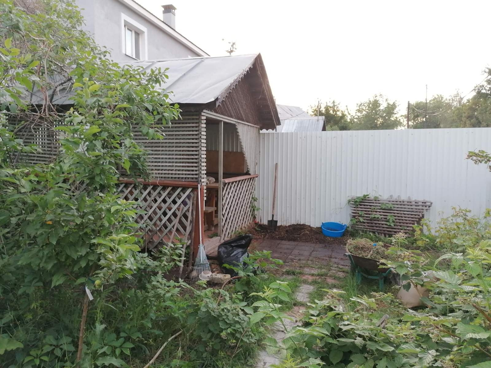 Дом деревянный с мансардным этажом и пристроем из керамзитобетонных блоков общей площадью 1-го этажа 94 кв.м. На мансардном этаже комната 12 кв.м. В доме имеется электро- и газоснабжение, локальная  канализация, (туалет на улице), отапливается газовым котлом. В доме два входа с разных сторон, две кухни, два погреба, 5 жилых комнат. Имеются беседка, мангальная зона, туалет, въездные ворота в заборе и площадка для стоянки автомобиля, фруктовые и ягодные насаждения. Соседние участки также продаются. Территория храма напротив участка идеально подходит для прогулок с детьми.