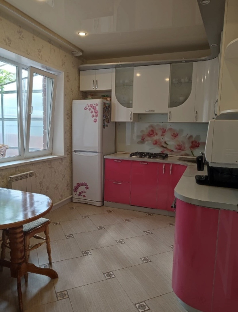 2-х этажный жилой дом из белого кирпича,в доме 6 жилых комнат. Большой просторный зал и очень удобная оборудованная всей техникой кухня.На каждом этаже есть санузел. На территории участка также находится отдельное строение,его используем в качестве мастерской (сарая). В доме два входа. В шаговой доступности от дома есть детский сад и 2 школы,дом в отличном местоположении,а также есть все коммуникации на круглогодичное проживание.