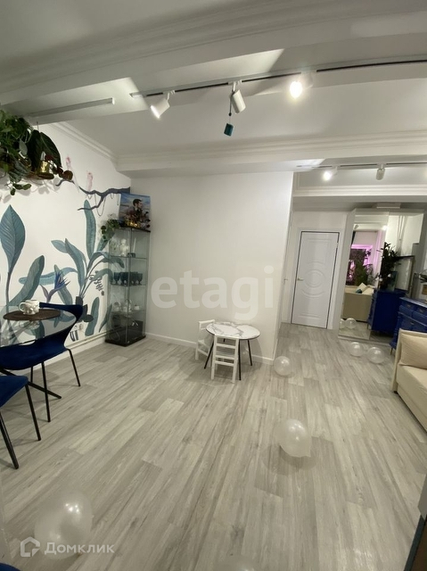 В комнате белого цвета (планировалась как детская сейчас выполняет роль игровой и частично гостиной) роспись стены выполненная художником по авторскому эскизу, полностью ручная работа. На потолке в комнате трековые светильники: двигаются в разные стороны по ши Номер в базе: 8555468. Район: Ленинский