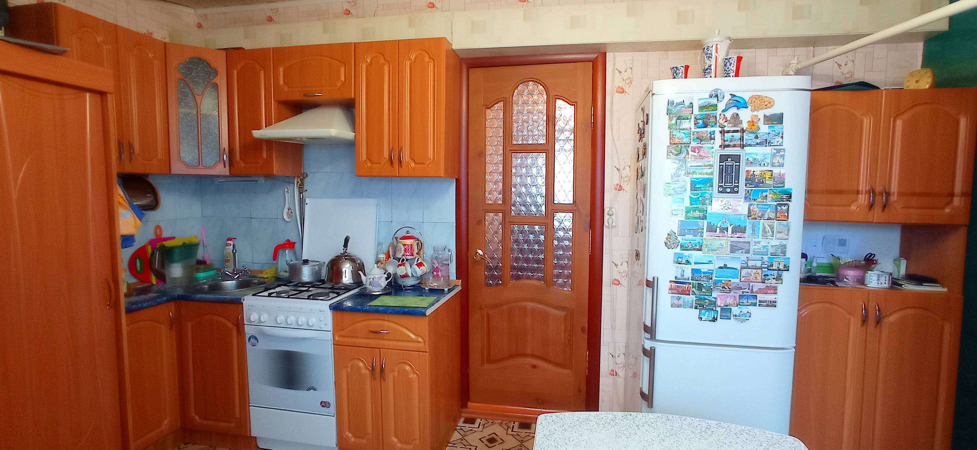 В доме  3 жилые комнаты, (+1 доп.комната 17кв.м.-доля) 2 кухни, ванная, душевая кабина, 2 сан.узла, веранда холодная, погреб не выходя из дома.