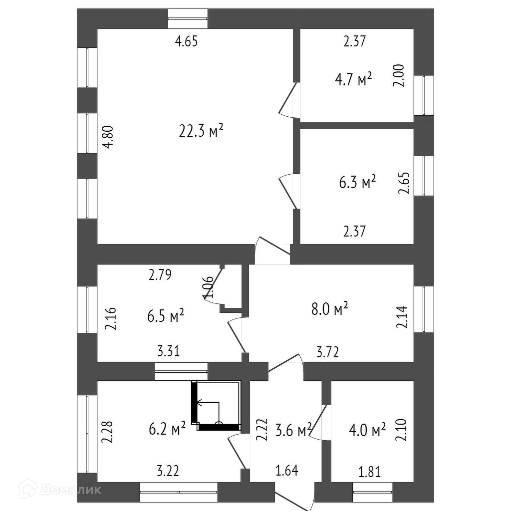 Общая площадь 61.6 м2