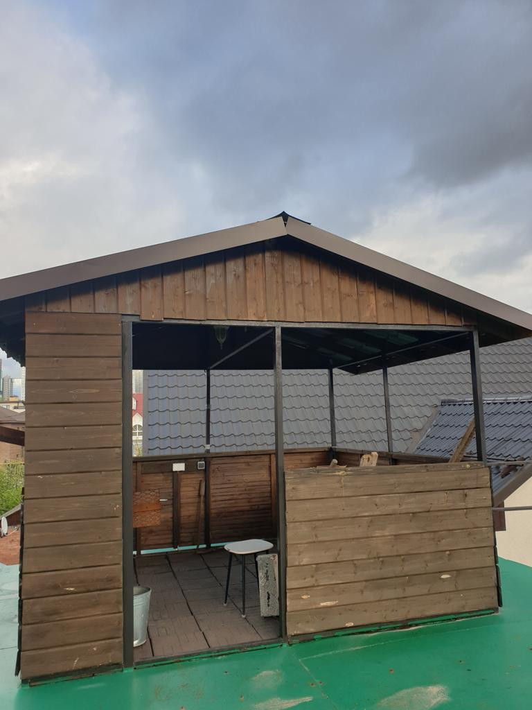 Гостевой дом 90 м.кв.: на первом этаже сауна, купель, комната отдыха. На втором этаже гостиная и спальня. На плоская крыше гостевого дома расположена зона барбекю с беседкой. Открывается красивый вид на Волгу и Жигулевские горы.