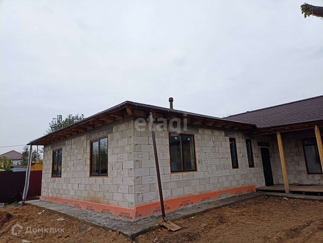 Отличная планировка, в доме 4 больших комнаты, 4 гардеробных, 2 санузла, просторная кухня - гостиная 43 кв. м. с панорамным окнами и выходом на террасу размером 18 кв. м. Высокие потолки 3 м. Рядом с террасой растут дубы. Большой участок 9 соток, назначение ИЖС. Новый забор из профлиста, двое ворот, большая площадка под 2 машины. Дом построен из газобетона толщиной 300 мм, мощный фундамент из ФБС и монолитная плита из бетона марки 350, произведена разводка проводки, канализация, колодец 11 колец, вода заведена в дом, участок отсыпан песком, крыша сделана из двухслойной мягкой кровли, потолок утеплен мин. ватой, двухкамерные качественные стеклопакеты, отмостка вокруг всего дома, водосток. Строил дом для себе, на материалах не экономил. Подключен городской свет, газ на границе участка. Дороги зимой чистят, соседи проживают круглый год, улица активно застраивается, готовятся документы для подключения городской канализации и водоснабжения. Рядом иновый детский сад. Документы для оформления права собственности готовы. Ипотека, мат капитал, обоснованный торг. Возможен обмен на квартиру