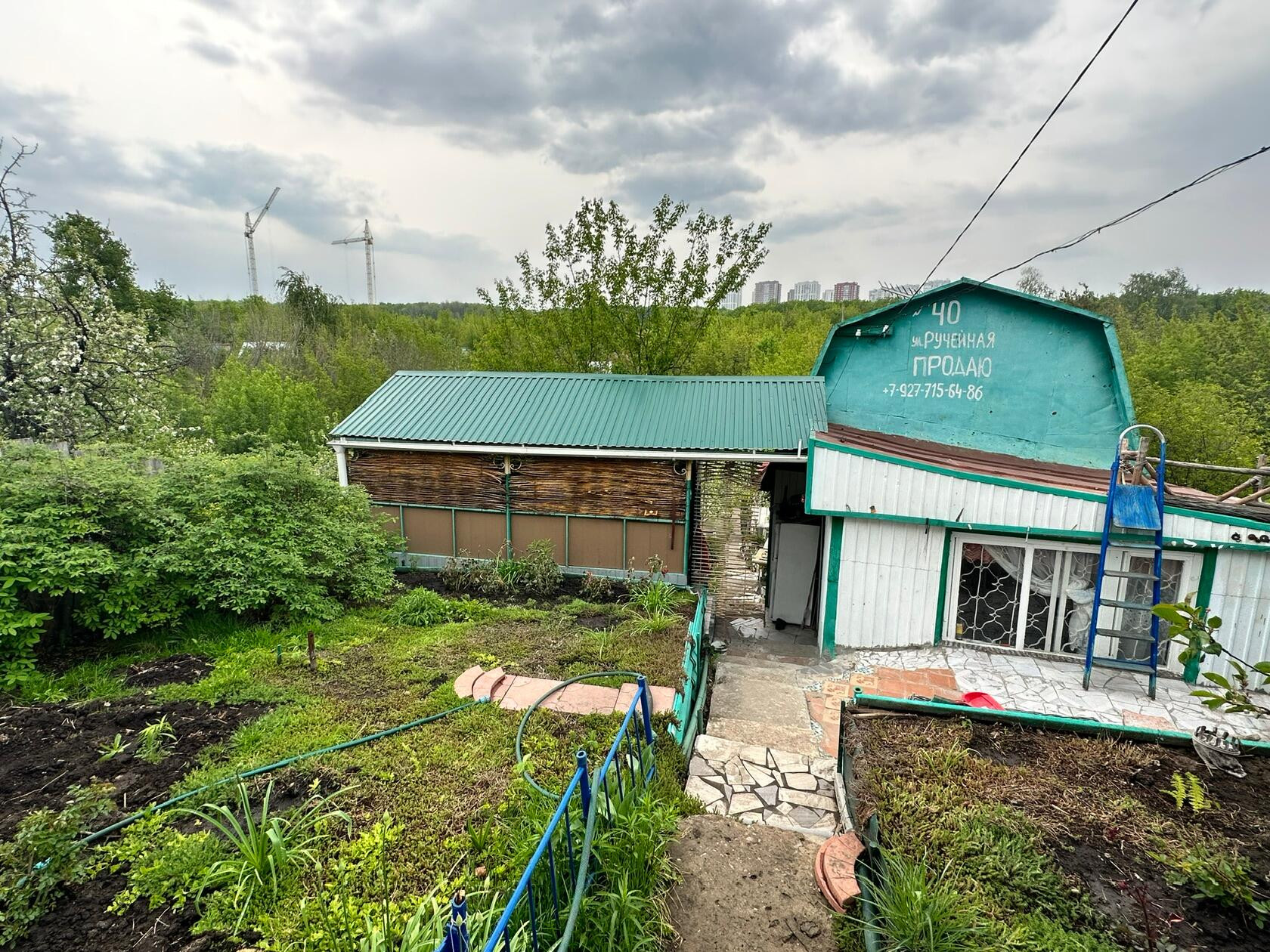 Участок  находится в непосредственной близости от города,  на склоне, около ручья, тихое и уютное место. Участок ухоженный, с хорошими сортами малины, яблонь и других фруктово-ягодных насаждений. Есть крытая веранда. Вода без графика все время, свет. Есть возможность газифицировать.