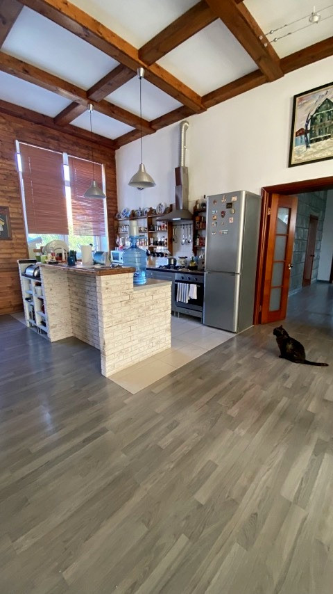 Первый этаж: огромная кухня-гостиная с дровяным камином, сан узел, гардеробная. Место под банную спа зону.